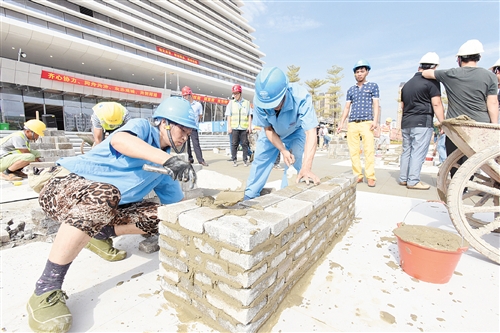 “請問,作為自治區(qū)成立60周年的重點(diǎn)項(xiàng)目,南寧市圖書館項(xiàng)目將于什么時(shí)候竣工?”“2018年6月30日,回答完畢”。5月31日上午,南寧威寧建投公司在南寧市新圖書館項(xiàng)目舉辦“喜迎廣西60周年慶 打響項(xiàng)目建設(shè)攻堅(jiān)戰(zhàn)”知識(shí)競賽及勞動(dòng)技能比賽。來自參與建設(shè)威寧建投公司承建項(xiàng)目的8家單位共40位參賽隊(duì)員參加此次活動(dòng)。