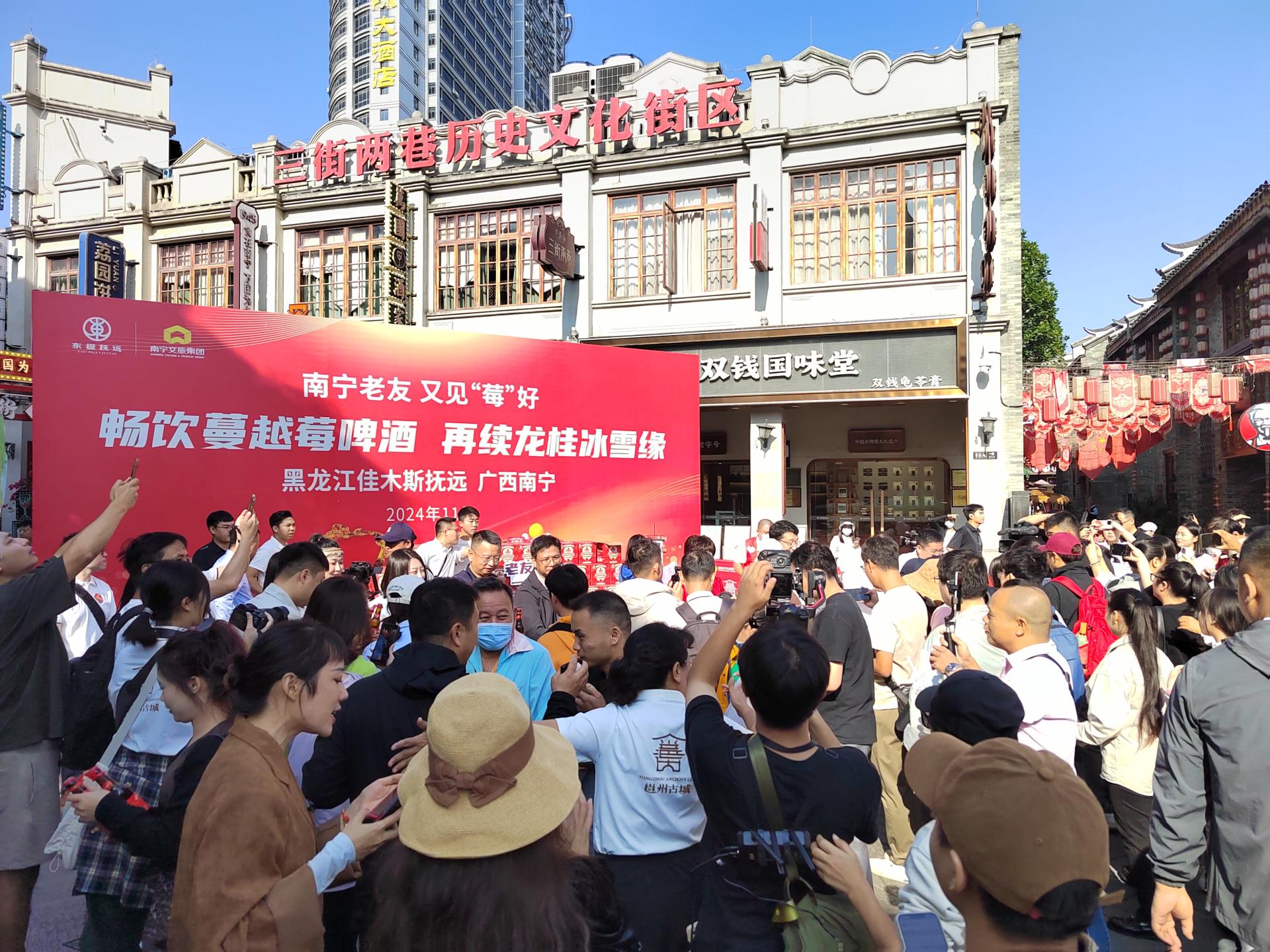 2024年11月10日,跨越4000公里的黑龍江撫遠(yuǎn)蔓越莓啤酒終于送到了南寧市民手中,大家實(shí)實(shí)在在感受到東北“老鐵”的深厚情誼。在南寧威寧集團(tuán)旗下南寧文旅集團(tuán)所屬邕州古城·三街兩巷、廣西體育中心蔓越莓啤酒發(fā)放點(diǎn),近萬名市民領(lǐng)到了蔓越莓啤酒,活動(dòng)現(xiàn)場組織有序,得到市民點(diǎn)贊的同時(shí),吸引了眾多媒體的廣泛關(guān)注與深度報(bào)道,以蔓越莓為媒,南寧文旅集團(tuán)打響了產(chǎn)業(yè)提質(zhì)升級(jí)后的第一戰(zhàn)!蔓越莓啤酒不僅承載了廣西和黑龍江兩地人民...