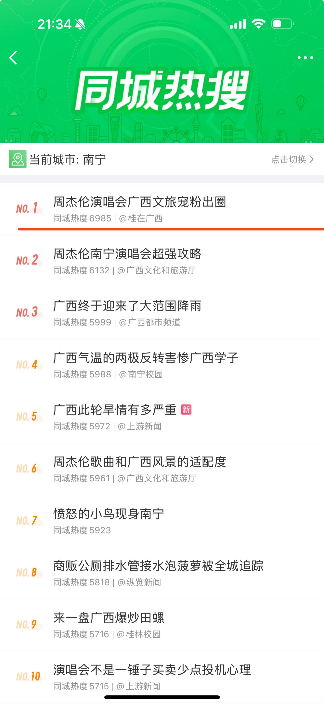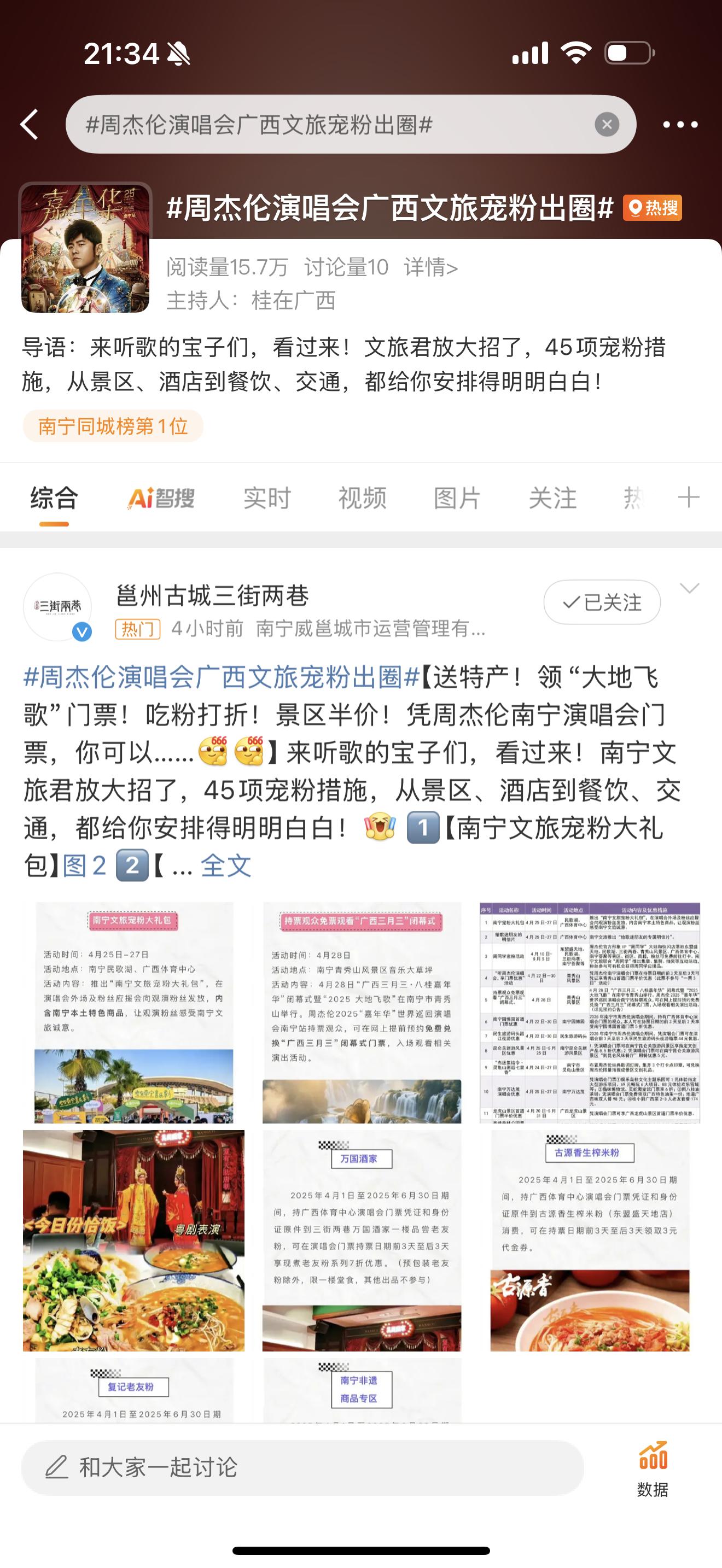 周杰倫南寧演唱會期間,南寧文旅集團(tuán)充分發(fā)揮新媒體宣傳優(yōu)勢,通過南寧文旅集團(tuán)、廣西體育中心雙賬號矩陣,6個平臺共發(fā)布圖文及視頻58條,累計曝光量超1000萬,互動量4.15萬人次。南寧文旅集團(tuán)策劃的“周杰倫粉絲禮遇”活動登上新浪微博同城熱搜榜第一名話題“周杰倫演唱會廣西文旅寵粉出圈”的首條推薦位。