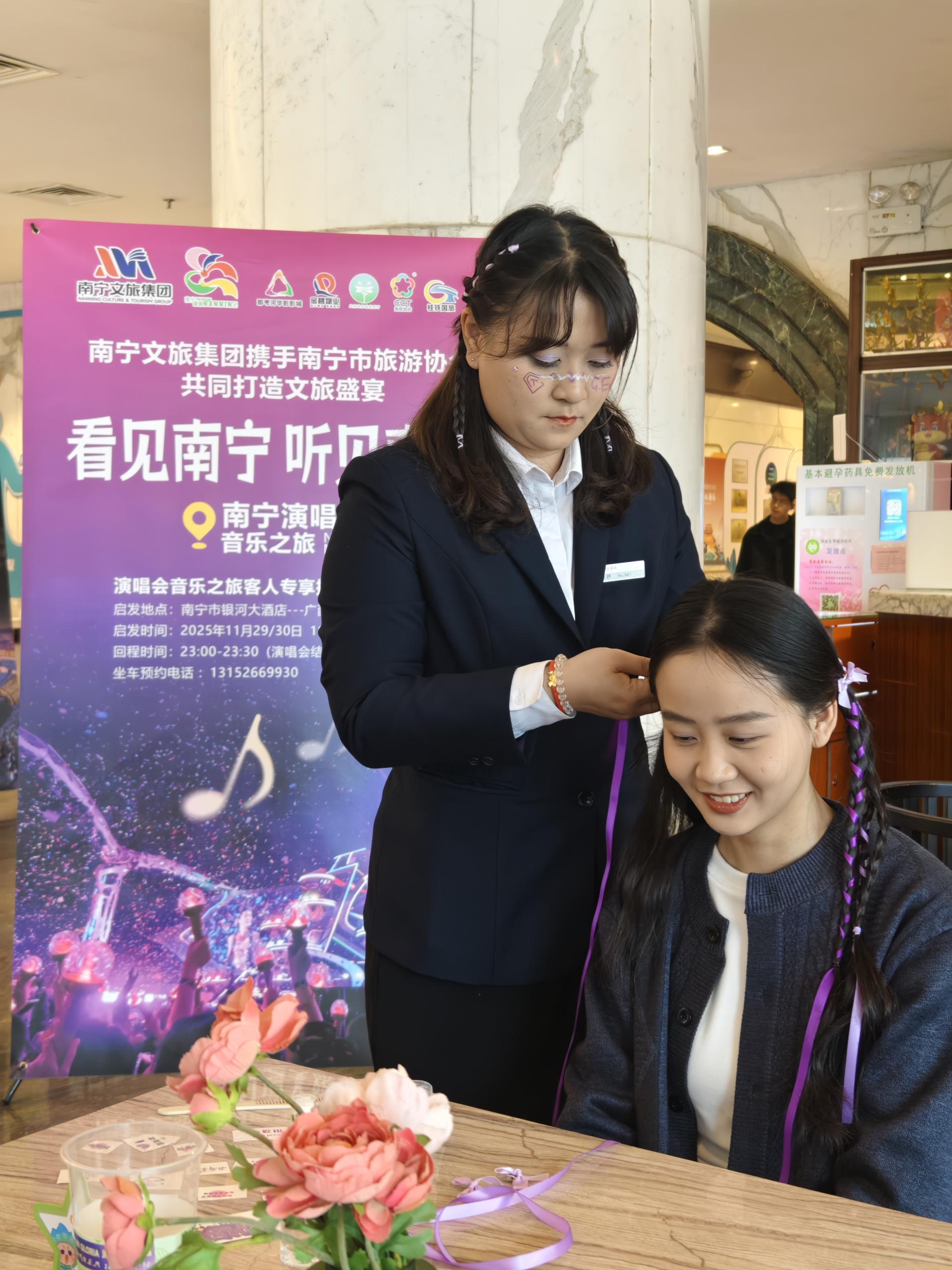 同時(shí),南寧文旅集團(tuán)還聯(lián)動(dòng)南寧市旅游協(xié)會(huì)共同打造“看見南寧 聽見南寧”演唱會(huì)音樂之旅,整合多方資源為來邕的外地游客提供“吃住行一站式文旅服務(wù)”,全方位感受來南寧觀演及旅游的便捷與溫度。南寧文旅集團(tuán)旗下五象山莊、銀河大酒店同步升級(jí)專屬文旅配套服務(wù),推出接駁車接送、應(yīng)援妝、歌迷客房個(gè)性化定制等增值服務(wù),將本土特色與觀演體驗(yàn)深度融合;五象山莊重磅推出茉莉花冷萃飲品、銀河大酒店的非遺邕城涼茶定制歌迷專屬杯套,更讓歌迷在觀演中品味邕城風(fēng)味,感受冬日暖意,讓南寧的城市特色與文旅魅力深入人心。