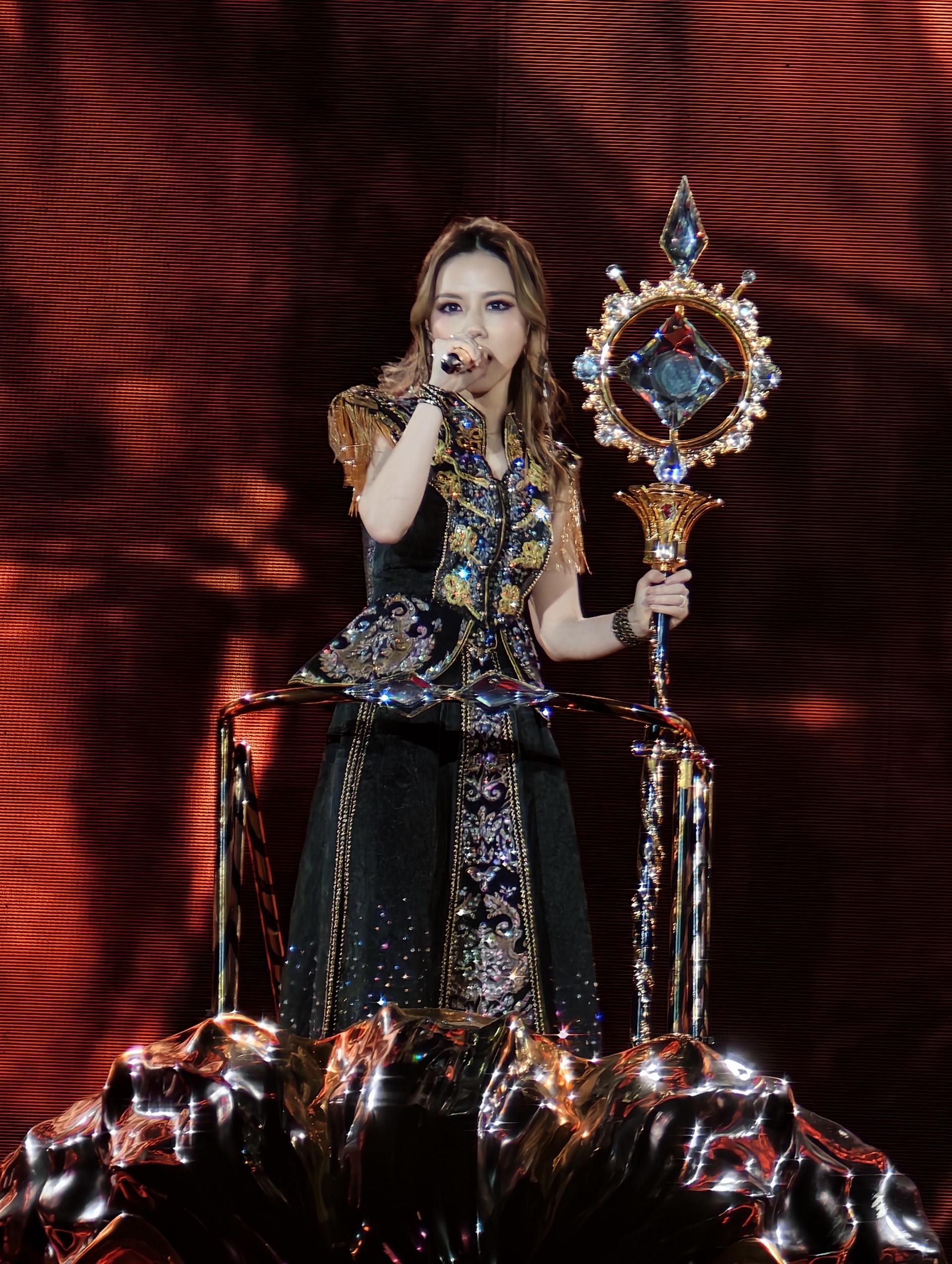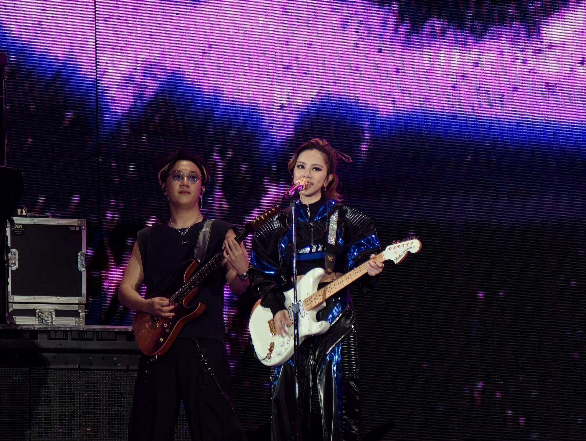 開場前,“棋士”們吹著口哨整齊劃一呼喊著鄧紫棋的名字,聲浪鏗鏘,將現(xiàn)場期待的氛圍推至頂峰。當(dāng)暗場里《摩天動(dòng)物園》的音效響起,全場熱烈沸騰。鄧紫棋霸氣登場,站在巨大的金屬雄獅裝置從舞臺(tái)地面緩緩升起,手里握著鑲嵌水晶的權(quán)杖,在聚光燈下折射出細(xì)碎的光。當(dāng)演唱《光年之外》時(shí),屏幕上璀璨的星系與變幻的星云同步流轉(zhuǎn),璀璨星光與現(xiàn)場熒光海交相輝映,沉浸式體驗(yàn)拉滿。
