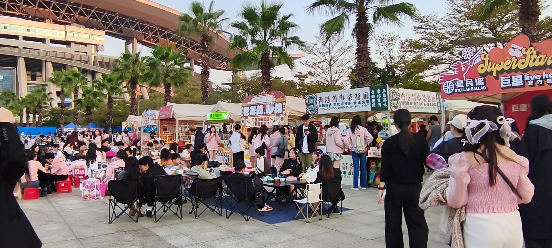 與演唱會(huì)熱烈氛圍同步升溫的,還有廣西體育中心傾力打造的“樂(lè)市市集”,浪漫“羅曼城”從場(chǎng)外亮眼的明紅色應(yīng)援墻處就已經(jīng)拉開(kāi)序幕。本次樂(lè)市市集以“跟著演唱會(huì)去旅行”為主題,不僅設(shè)置了亮紅主題色的粉絲打卡專區(qū),更集合美食、文創(chuàng)、音樂(lè)、歌迷等多元業(yè)態(tài),聯(lián)動(dòng)歌迷與商家,推出專屬特色官方周邊。