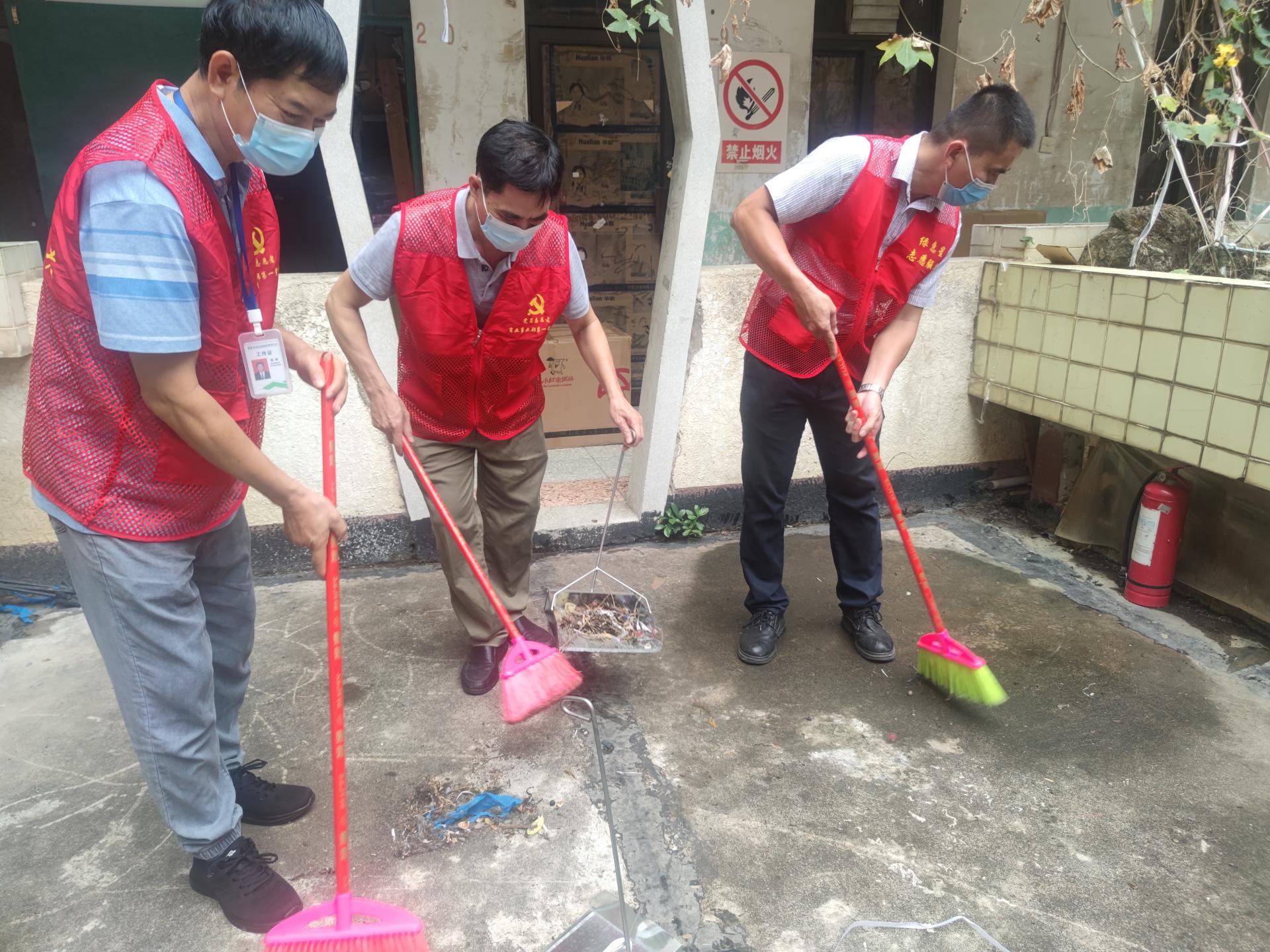 志愿者與經(jīng)營(yíng)戶開(kāi)展衛(wèi)生大掃除