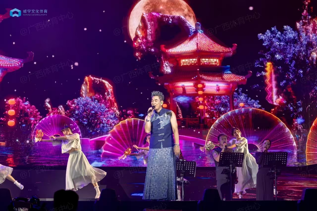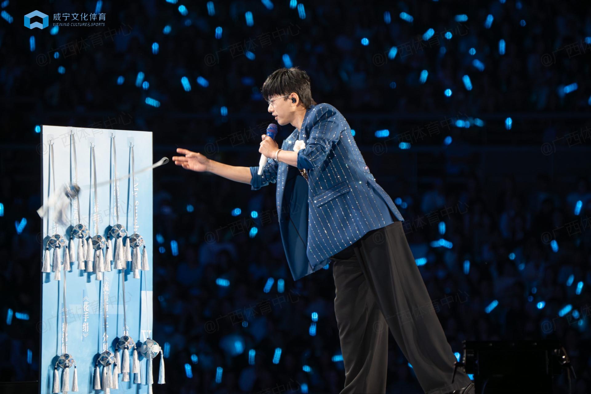 在觀演現(xiàn)場,明星大咖也在廣西體育中心開啟“獨寵”模式,從周華健和任賢齊身著壯族傳統(tǒng)織錦獻唱,到張信哲熱情推薦廣西美食,再到張杰親身體驗廣西民俗文化“拋繡球”,明星與粉絲的互動引發(fā)一輪輪話題熱潮,廣西體育中心演出現(xiàn)場的熱度和“含金量”在不斷攀升。