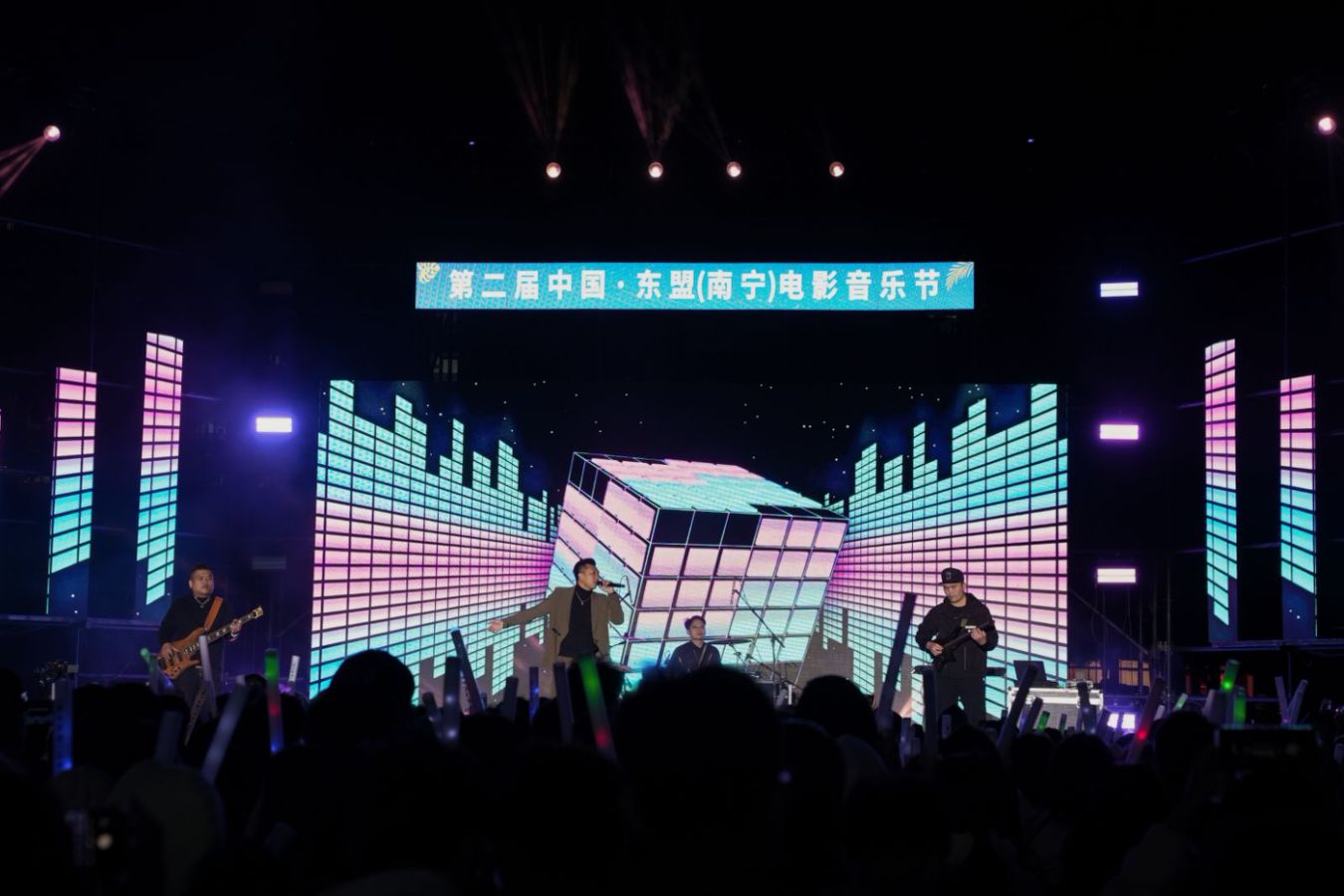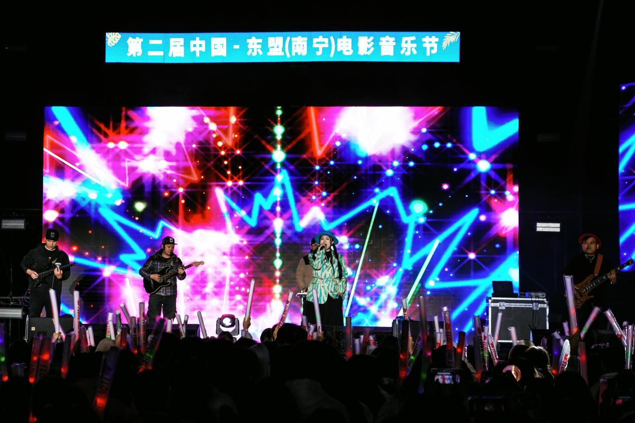 唱響冬日歡歌,共享音樂(lè)盛宴。12月14—15日,第二屆中國(guó)—東盟(南寧)電影音樂(lè)節(jié)在南寧學(xué)院、南寧職業(yè)技術(shù)大學(xué)完美開唱,兩所高校超一萬(wàn)名學(xué)生參與。本屆音樂(lè)節(jié)以電影文化為主題,通過(guò)邀請(qǐng)區(qū)內(nèi)專業(yè)音樂(lè)組合、樂(lè)隊(duì),攜手高校音樂(lè)愛(ài)好者,翻唱經(jīng)典電影歌曲、流行歌曲(熱歌)、本土特色原創(chuàng)音樂(lè)作品、部分東盟國(guó)家歌曲,為高校學(xué)子帶來(lái)融合唱跳、流行、說(shuō)唱、搖滾等多樣化風(fēng)格的演出,以歌會(huì)友、以歌傳情,相比去年,在內(nèi)容呈現(xiàn)上不僅彰顯更多電影元素,還充滿了濃濃的東盟風(fēng)情,Miya樂(lè)團(tuán)帶來(lái)的《泰friend》出自新民歌大會(huì),將泰語(yǔ)和壯語(yǔ)以新民歌形式融合呈現(xiàn),表達(dá)了中國(guó)和東盟國(guó)家的深厚友誼,給學(xué)生觀眾帶來(lái)更加直觀、豐富的電影音樂(lè)文化體驗(yàn),以此促進(jìn)不同文化之間的交流和融合。