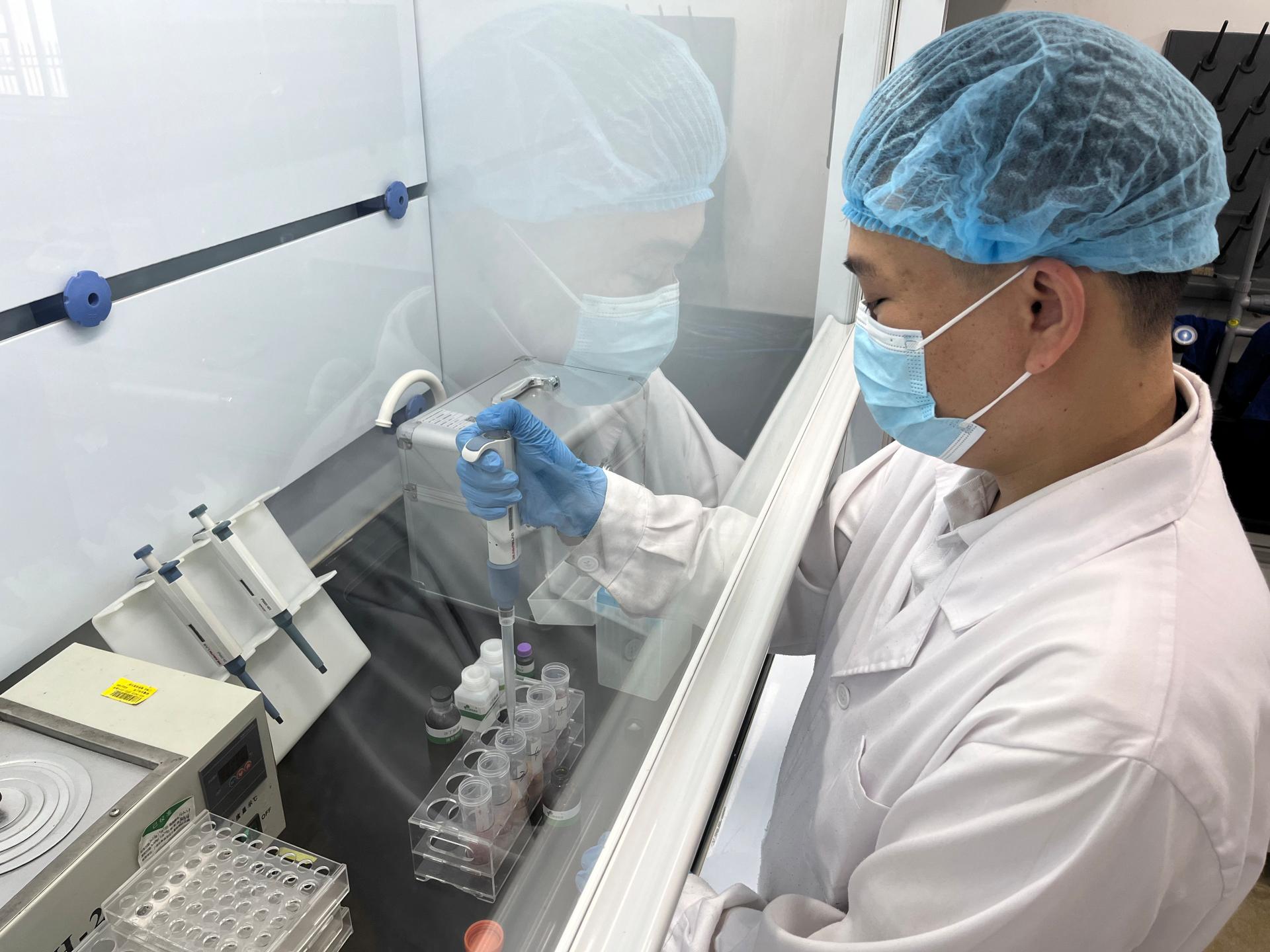 檢測(cè)員對(duì)食材進(jìn)行檢測(cè)