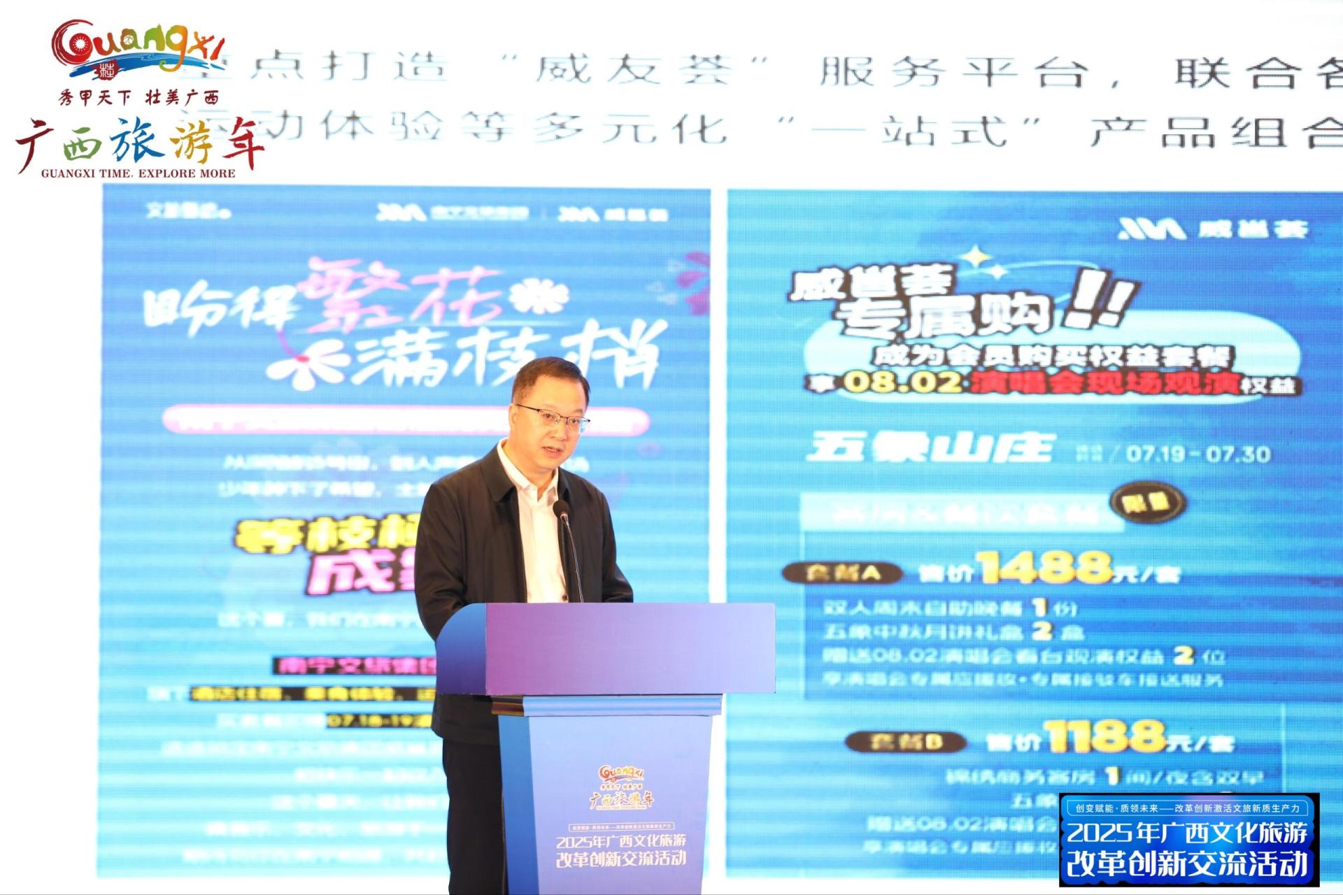 11月4日,在2025年廣西文化旅游改革創(chuàng)新交流活動(dòng)現(xiàn)場(chǎng),南寧威寧集團(tuán)副總經(jīng)理馮剛系統(tǒng)分享了“文旅+演藝”融合創(chuàng)新模式的實(shí)踐經(jīng)驗(yàn)與探索心得,引發(fā)廣泛關(guān)注與熱烈反響。作為南寧建設(shè)區(qū)域性國際文化旅游中心城市的核心引擎,在南寧威寧集團(tuán)的指導(dǎo)下,南寧文旅集團(tuán)以“跟著演出游廣西”為核心引領(lǐng),突破傳統(tǒng)文旅服務(wù)的邊界局限,完成了文旅產(chǎn)業(yè)的深度升級(jí)。集團(tuán)將專業(yè)化服務(wù)貫穿演藝項(xiàng)目宣傳推廣、票務(wù)運(yùn)營、落地執(zhí)行全周期,徹底扭轉(zhuǎn)以往“被動(dòng)配合”的合作格局,通過系統(tǒng)性創(chuàng)新構(gòu)建起“演唱會(huì)+文旅”消費(fèi)新生態(tài)。