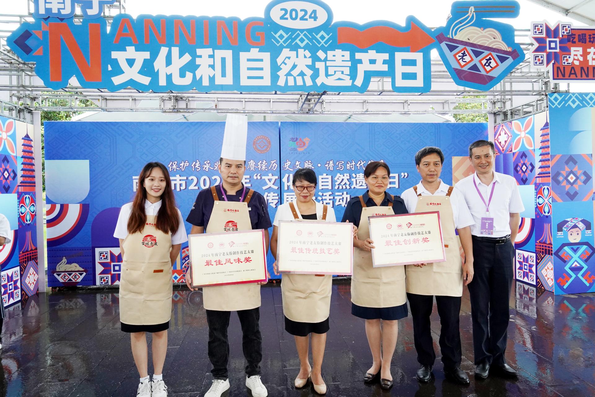 同時(shí),在活動(dòng)現(xiàn)場(chǎng)舉辦的南寧市2024年“文化和自然遺產(chǎn)日”南寧老友粉制作技藝大賽上,銀河大酒店以精湛的老友粉制作技藝和獨(dú)特的味道創(chuàng)新,贏得了評(píng)委和現(xiàn)場(chǎng)市民的喜愛,其中制作的“古城老友豬雜粉”榮獲“最佳創(chuàng)新獎(jiǎng)”,“古城老友干撈粉”榮獲“最佳風(fēng)味獎(jiǎng)”,“古城老友炒粉”榮獲“最佳傳統(tǒng)技藝獎(jiǎng)”。