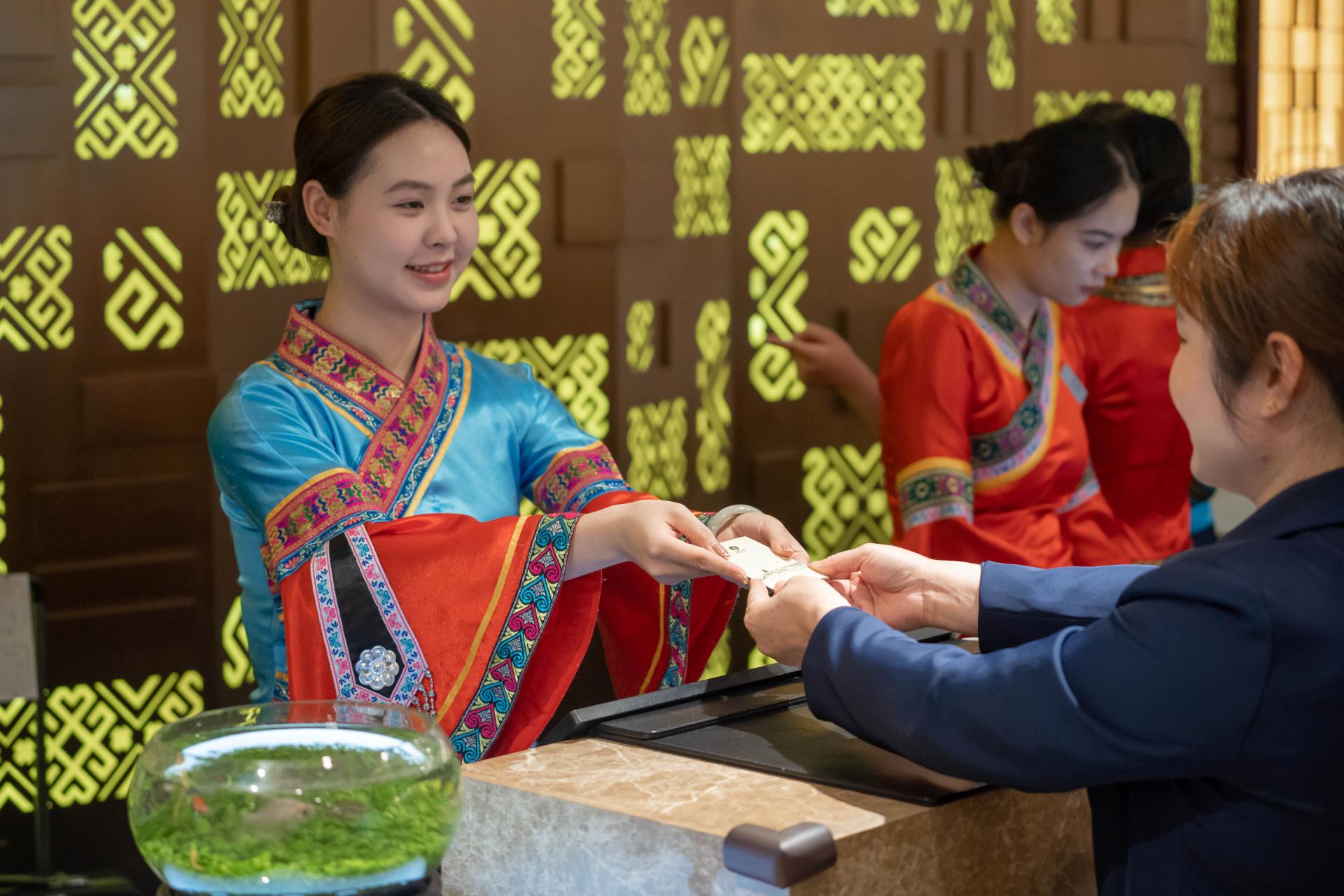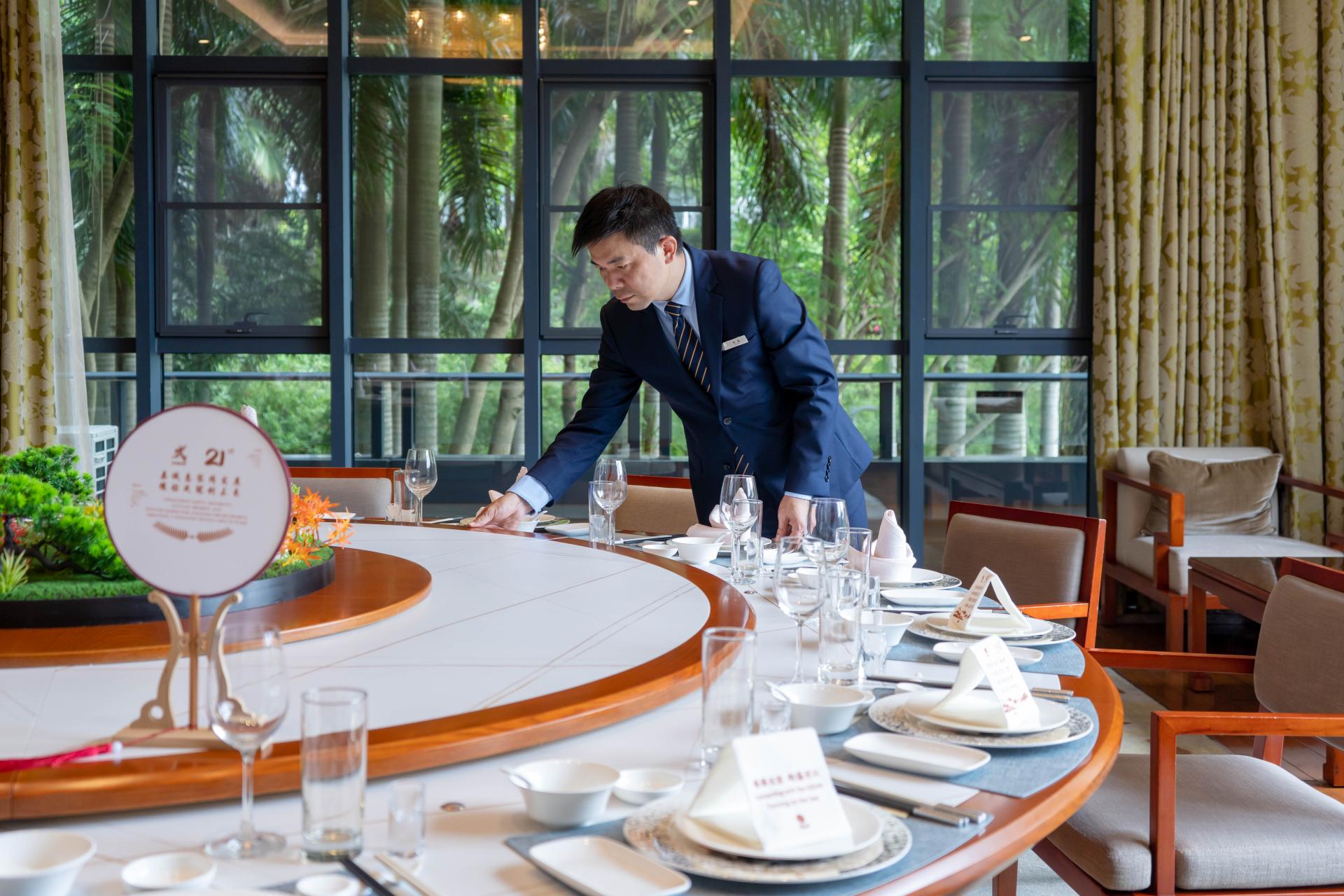 在接待過程中,五象山莊全體員工秉承“超越期望,誠心為您”的服務(wù)理念,以熱情、周到、細(xì)致的態(tài)度為賓客提供溫情備至的客房、餐飲和會(huì)議服務(wù)。為了照顧不同國家賓客的信仰及風(fēng)俗習(xí)慣,山莊銷售團(tuán)隊(duì)通過前期與會(huì)務(wù)組的充分溝通與了解,組織員工進(jìn)行專項(xiàng)培訓(xùn);客房部為了營造溫馨、舒適、優(yōu)雅的住宿氛圍,對(duì)客房進(jìn)行精心布置和美化,一個(gè)東博會(huì)的主題logo,一句暖心的問候祝福語便讓賓客感受到家的溫馨;餐飲部在餐桌及會(huì)場布置方面融入廣西銅鼓、繡球等傳統(tǒng)文化元素,不僅帶給賓客尊貴感和驚喜體驗(yàn)感,同時(shí)也讓賓客感受到獨(dú)特而又熱情的壯鄉(xiāng)文化與待客之道;宴會(huì)部提供了優(yōu)質(zhì)、專業(yè)的會(huì)議服務(wù),確保會(huì)議的順利進(jìn)行;工程部隨時(shí)配合設(shè)施設(shè)備的維護(hù)及關(guān)鍵機(jī)房不間斷值守;安保部則24小時(shí)待命,嚴(yán)密巡查停車場、監(jiān)控中心,指揮停車秩序等,竭力保障住宿、會(huì)議場所的安全……這些細(xì)致入微的優(yōu)質(zhì)服務(wù)只為讓各方賓客真實(shí)感受到廣西熱情、周到的服務(wù),也讓每一位入住五象山莊的賓客在下榻期間倍感舒適與享受,留下一段美好的入住體驗(yàn)。