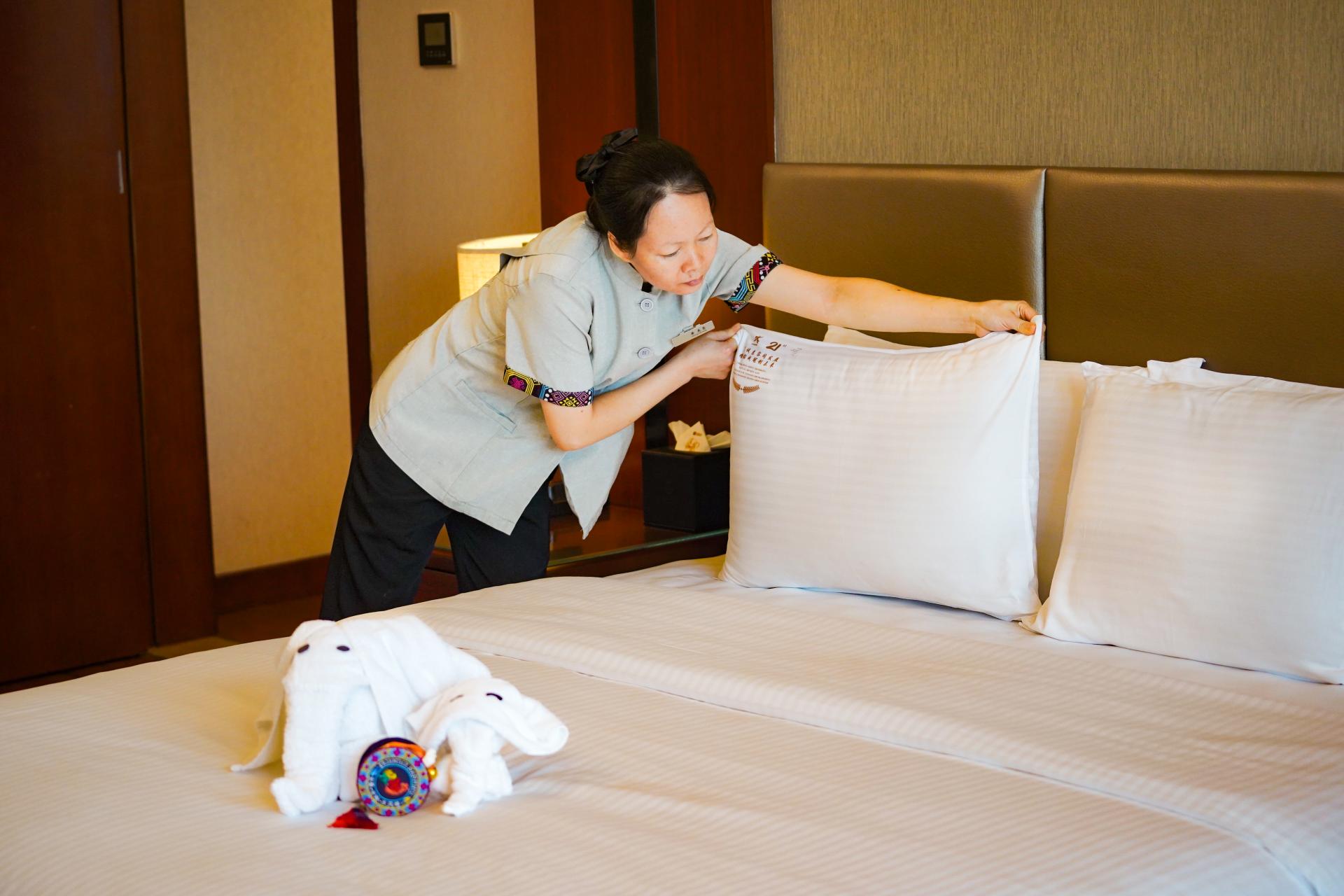 客房服務(wù)溫馨體貼。為保障參會(huì)賓客們擁有一個(gè)舒適的安睡環(huán)境,山莊客房部提前做好客房衛(wèi)生清潔、消毒和通風(fēng),同時(shí)增配不同類型的枕頭,并強(qiáng)化VIP服務(wù),提供24小時(shí)管家式服務(wù),與賓客的溝通做到準(zhǔn)確及時(shí),滿足賓客們的個(gè)性化需求,讓每位入住的客人感受到尊重和真誠。