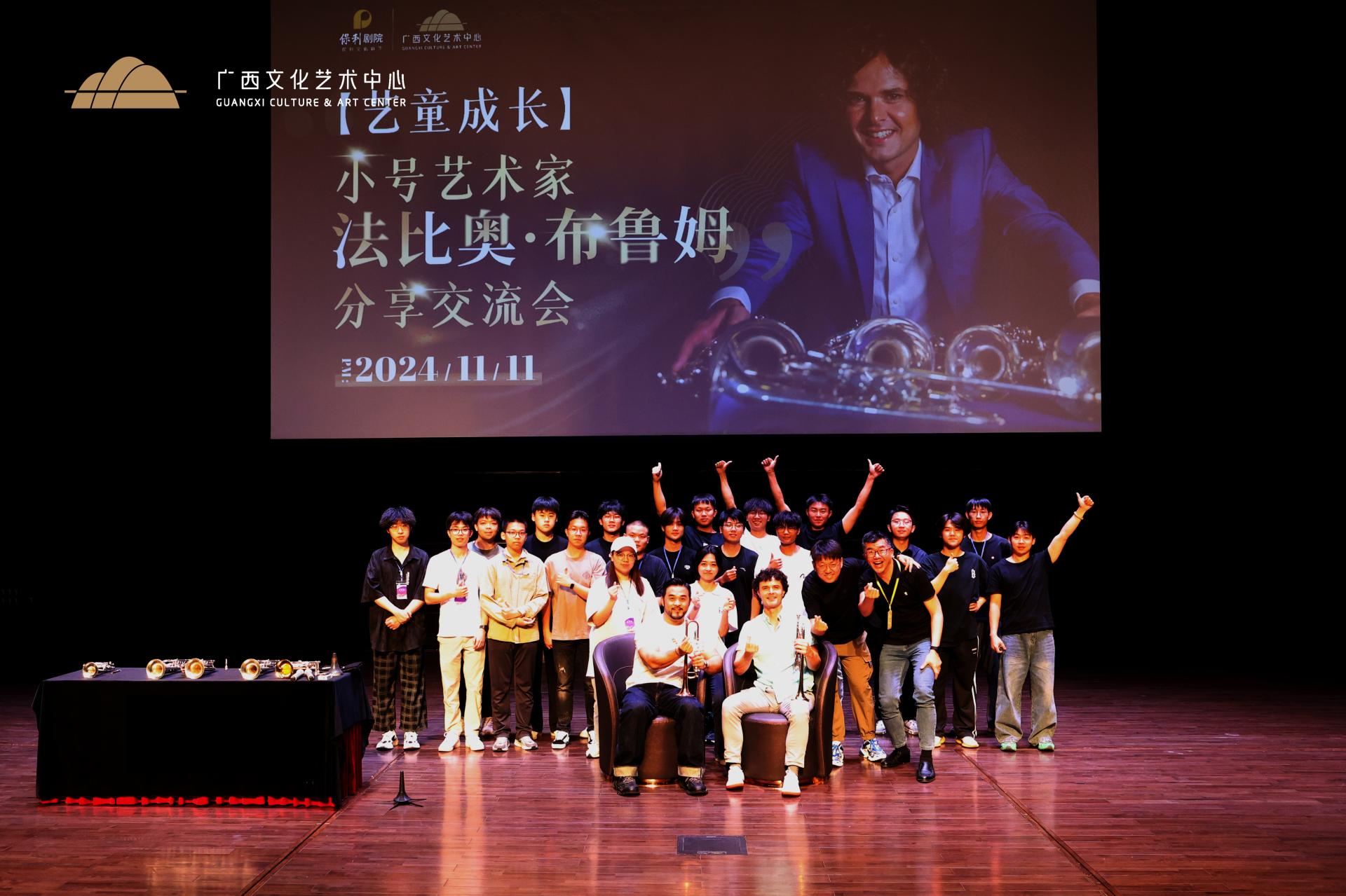為踐行全民藝術(shù)普及、文化惠民、文化利民的服務(wù)宗旨,進(jìn)一步營(yíng)造濃厚的藝術(shù)文化氛圍,近日,廣西文化藝術(shù)中心在多功能廳組織開展“藝童成長(zhǎng)”小號(hào)公益分享交流會(huì),邀請(qǐng)前加拿大銅管五重奏成員法比奧·布魯姆現(xiàn)場(chǎng)分享樂曲心得。廣西藝術(shù)學(xué)院小號(hào)副教授曹天受邀擔(dān)任交流分享會(huì)的主持人,廣西文化藝術(shù)中心藝術(shù)團(tuán)師生、廣西藝術(shù)學(xué)院學(xué)生共30人參加。