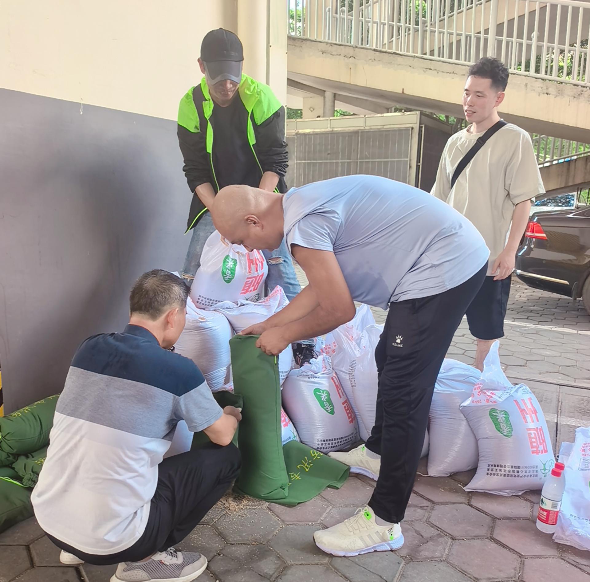 公司資產(chǎn)專管員現(xiàn)場協(xié)助制作防洪沙袋