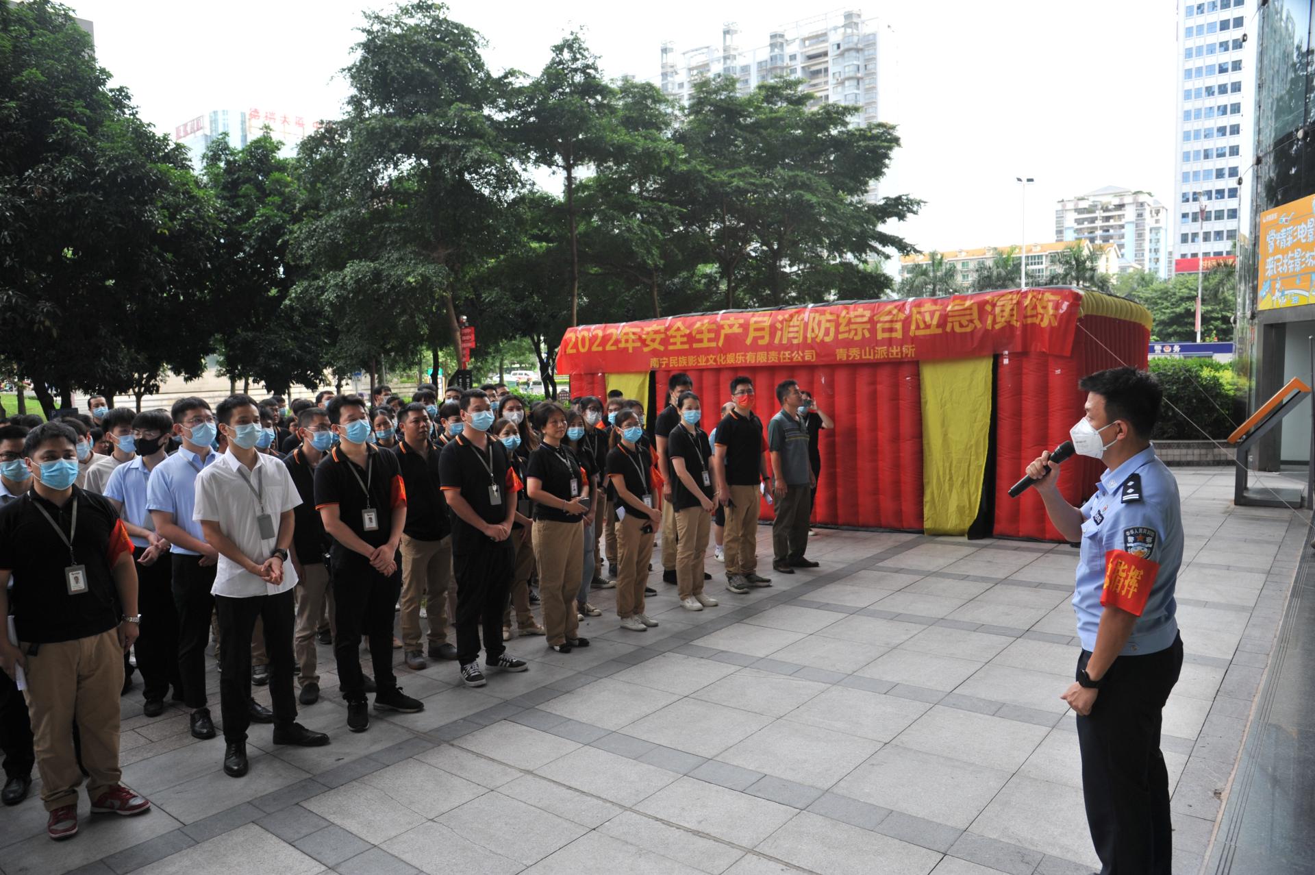 由南寧大地飛歌文化集團(tuán)有限責(zé)任公司主辦(下稱(chēng)南寧大地飛歌集團(tuán)公司)、青秀山派出所、南寧民族影業(yè)文化娛樂(lè)有限責(zé)任公司(下稱(chēng)民影公司)、南寧民族時(shí)代影業(yè)有限公司(下稱(chēng)時(shí)代公司)聯(lián)合承辦的2022年“安全生產(chǎn)月”消防疏散防踩踏應(yīng)急逃生演練,于2022年6月22日上午在民族影城舉行。南寧大地飛歌集團(tuán)公司各部門(mén)負(fù)責(zé)人及員工、青秀山派出所部分民警、民影公司、時(shí)代公司全體人員、一分公司、影城各租賃企業(yè)(商戶)部分代表參加演練。