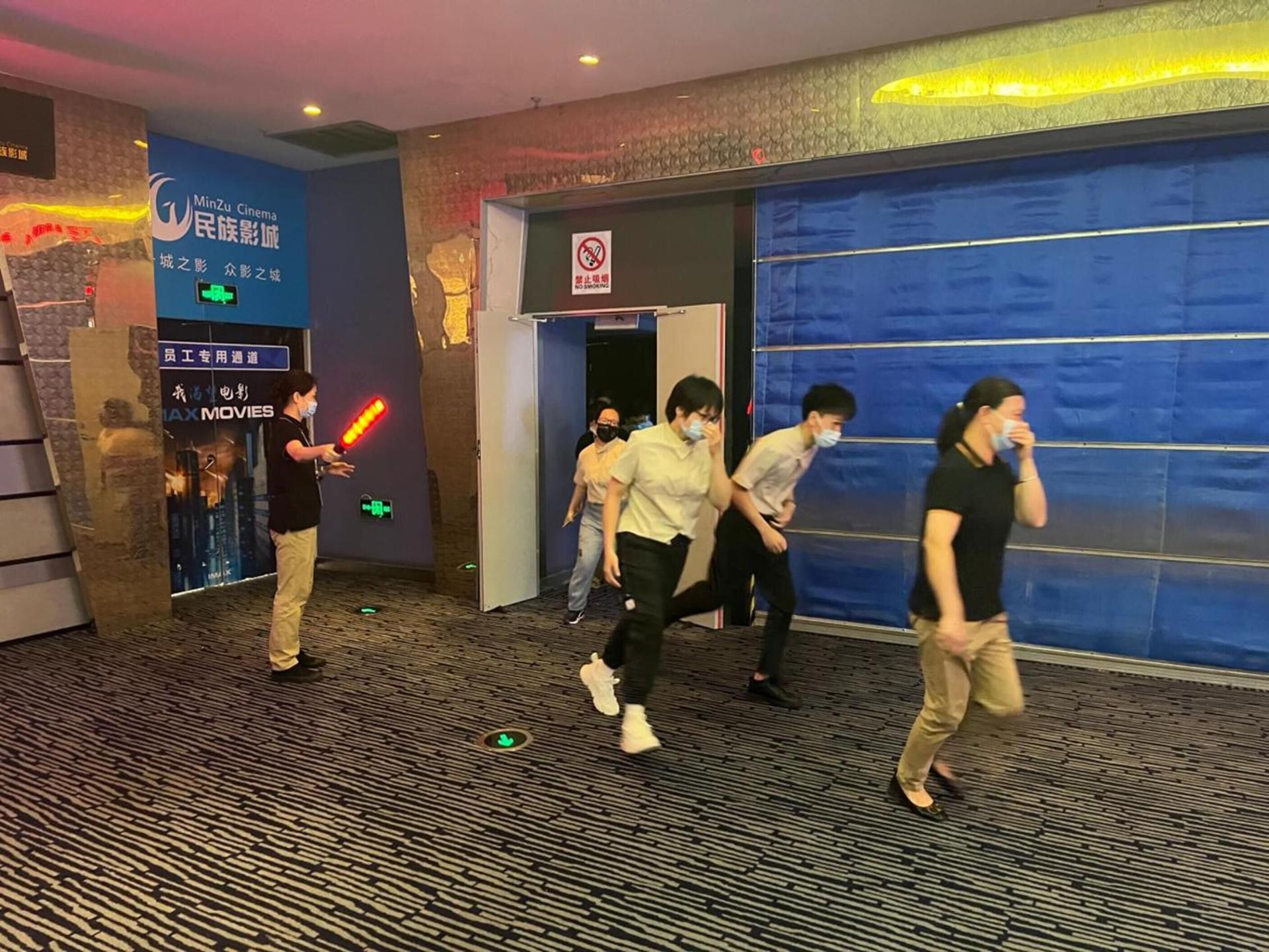 本次消防安全綜合演練以火情應(yīng)急處置、火場(chǎng)逃生自救及防踩踏疏散為主要內(nèi)容,整場(chǎng)演練緊張有序,通過(guò)實(shí)戰(zhàn)場(chǎng)景演練,進(jìn)一步增強(qiáng)廣大職工群眾的消防安全意識(shí),檢驗(yàn)影城整體火情應(yīng)變能力,提高疏散自救水平。