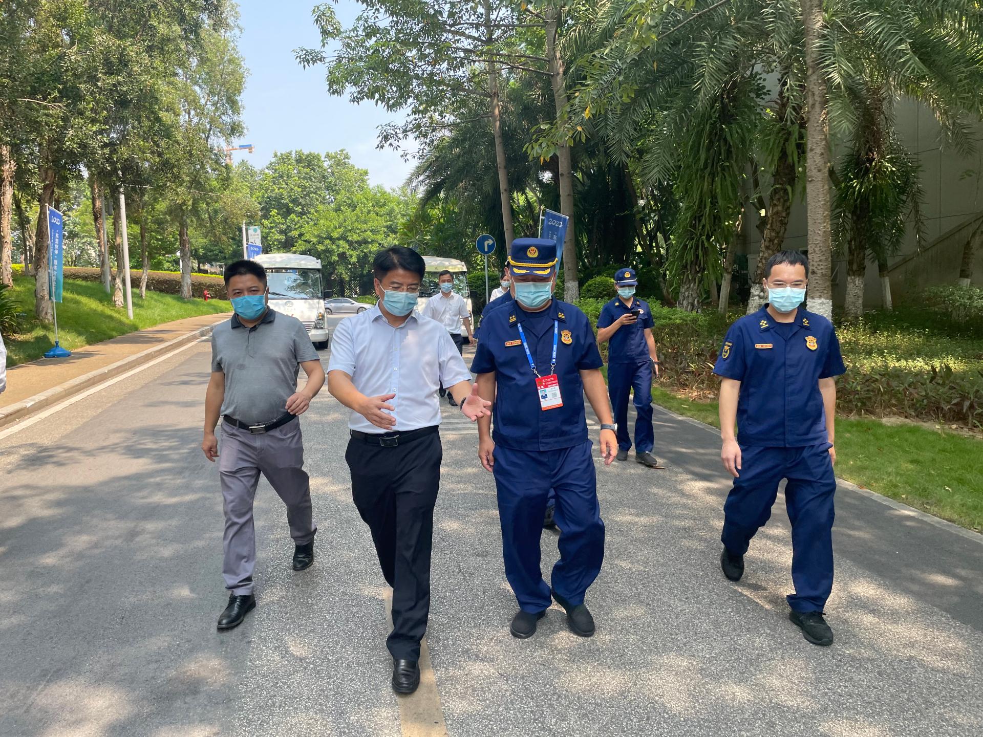 第19屆中國-東盟博覽會臨近,為全面加強(qiáng)“兩會”期間各項(xiàng)安全工作,嚴(yán)防安全事故發(fā)生。9月14日,集團(tuán)副總經(jīng)理、酒店公司黨委書記朱海和集團(tuán)副總經(jīng)理韋義勇一行到五象山莊檢查安全生產(chǎn)和疫情防控工作,嚴(yán)把安全關(guān)。南寧市消防支隊(duì)吳副支隊(duì)長、良慶區(qū)消防大隊(duì)鄭隊(duì)長蒞臨指導(dǎo)。