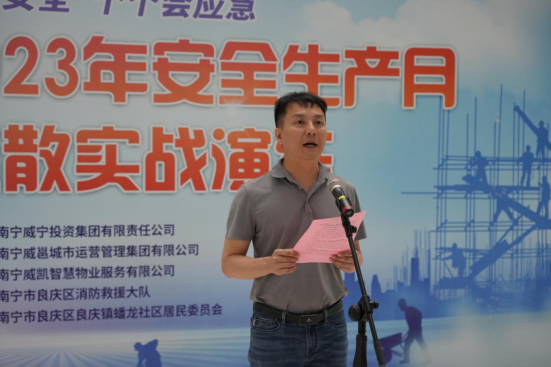 2023年6月是第22個(gè)全國(guó)“安全生產(chǎn)月”,為了切實(shí)增強(qiáng)企業(yè)員工安全意識(shí)及消防專業(yè)技能水平,6月26日,南寧威寧集團(tuán)緊扣“人人講安全,個(gè)個(gè)會(huì)應(yīng)急”主題,恪守“安全是企業(yè)生命線”準(zhǔn)則,因地制宜開展消防安全宣傳教育活動(dòng),提升全員應(yīng)急處置能力,為集團(tuán)各項(xiàng)業(yè)務(wù)安全發(fā)展提供保障。集團(tuán)副總經(jīng)理朱海參加活動(dòng)。