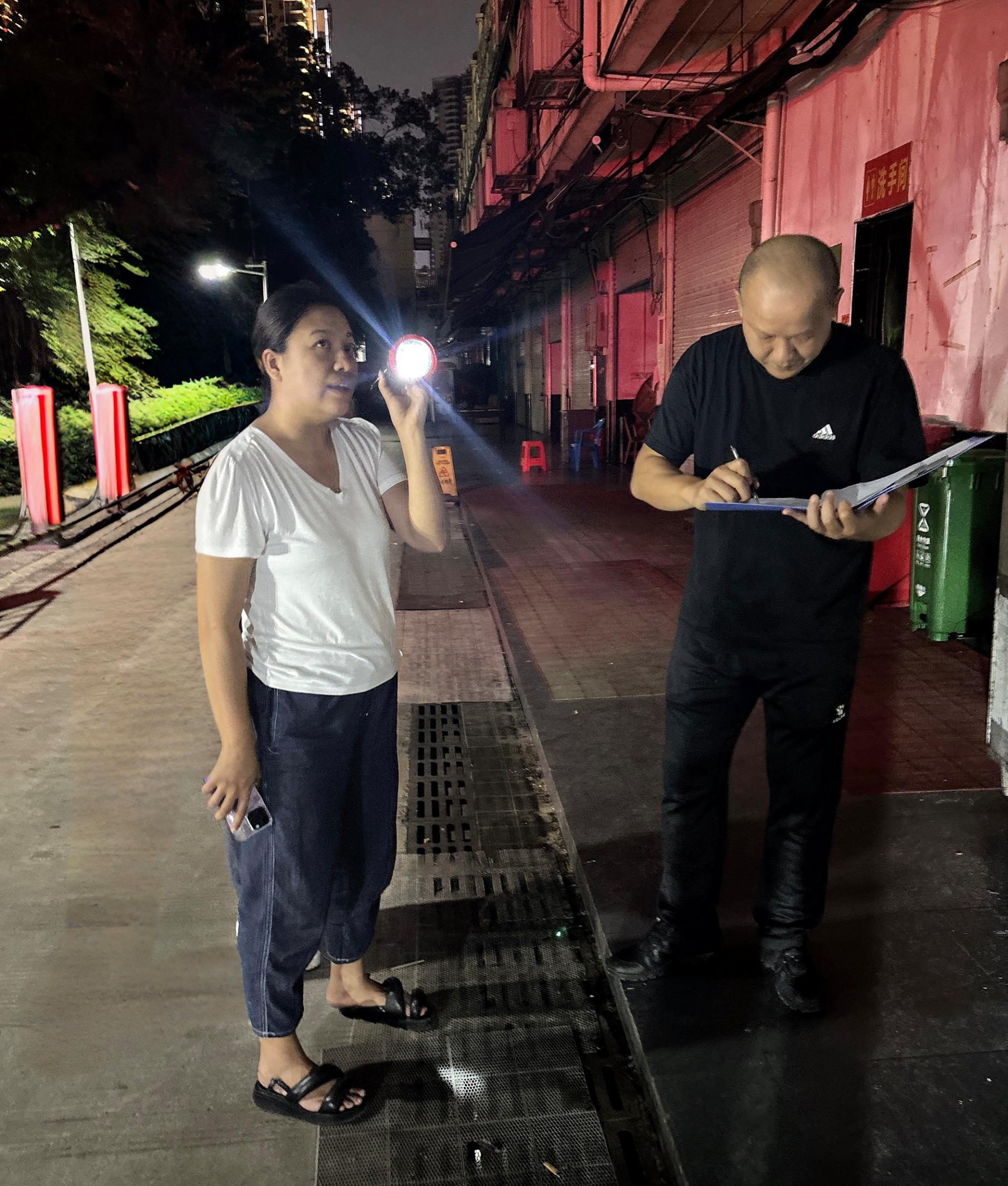 值班人員向租戶普及防洪應(yīng)急知識并協(xié)助開展清淤工作