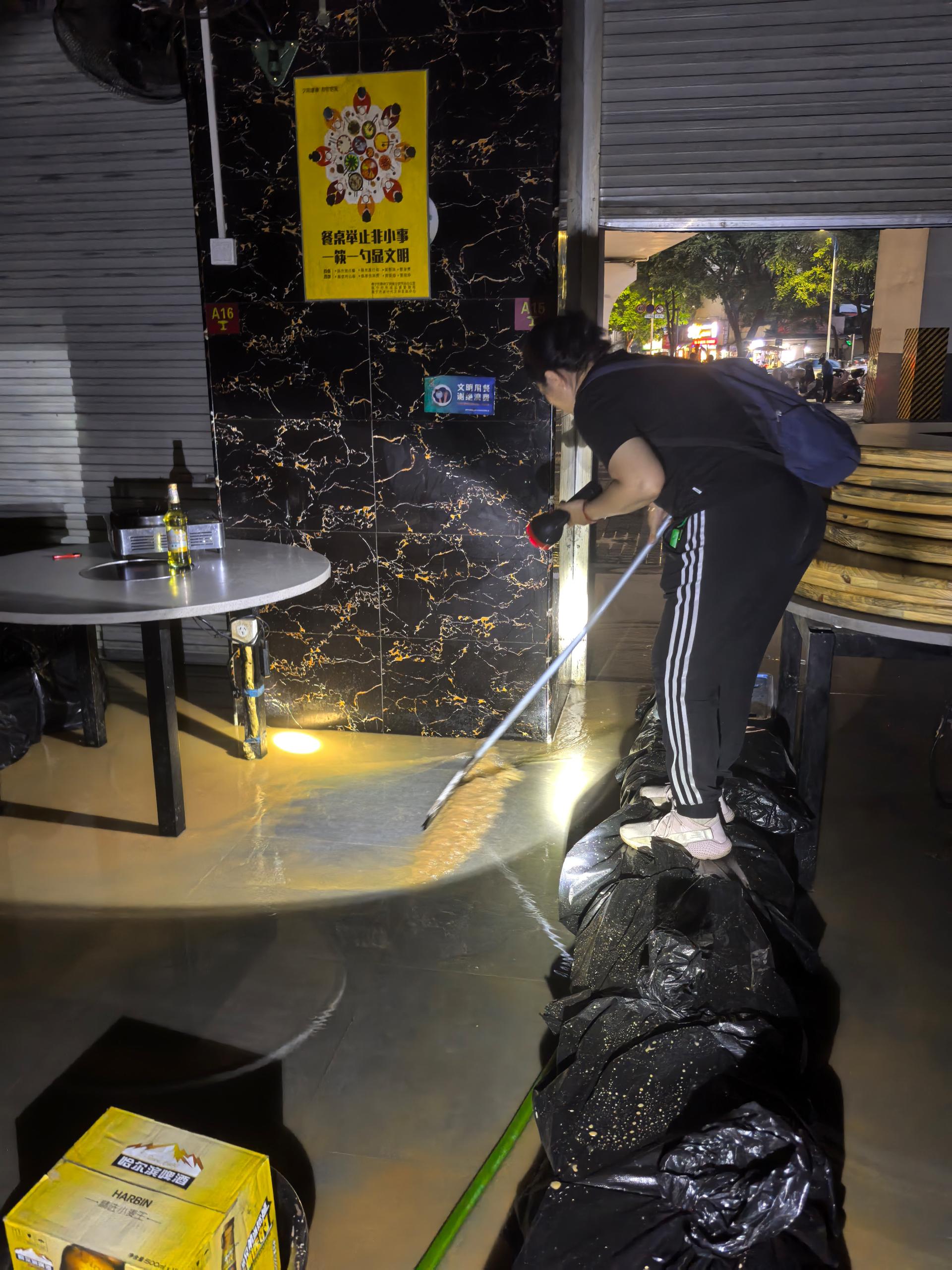 入汛以來,公司緊急成立防汛應(yīng)急搶險(xiǎn)專班,全力克服受災(zāi)面積廣、排查數(shù)量大和極端天氣等種種困難,實(shí)行24小時(shí)值班值守,對出現(xiàn)受損漏水的商鋪進(jìn)行全天候巡查監(jiān)控,避免險(xiǎn)情擴(kuò)大。同時(shí),加大應(yīng)急搶險(xiǎn)力度和巡查檢查頻次,設(shè)置警戒標(biāo)志和警戒線,采取商鋪全面斷電措施保障人員安全,協(xié)助商鋪?zhàn)鈶舭徇\(yùn)物資、接水儲水和清掃鋪內(nèi)積水,積極對接南寧市邕江防洪排澇工程管理中心開展現(xiàn)場勘察,研究解決滲水、漏水和墻體開裂等難題,并積極向租戶普及防洪搶險(xiǎn)應(yīng)急處置知識,與租戶共克時(shí)艱。