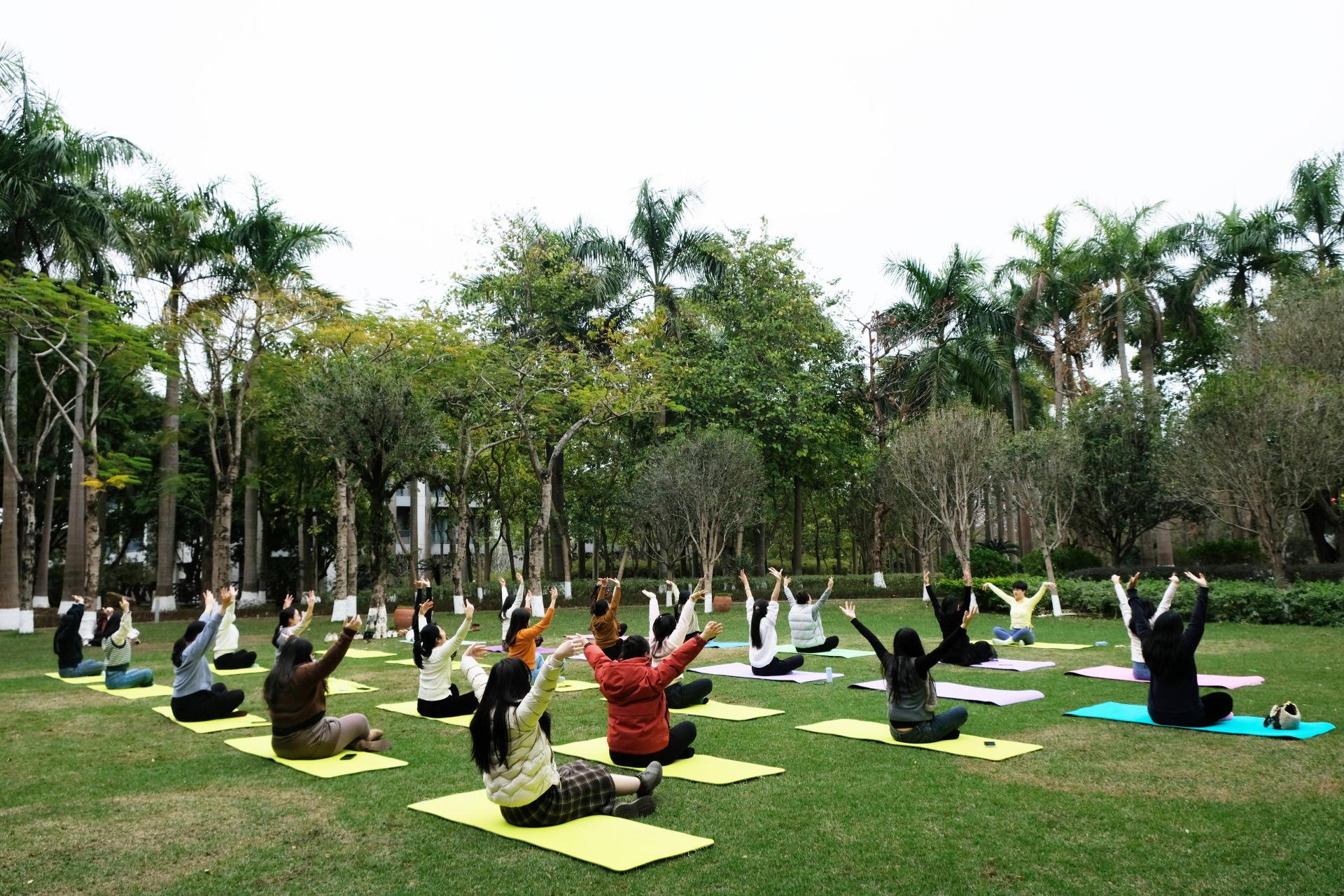 與此同時,五象山莊也為到店賓客準備了一系列精彩的活動。在山莊的5號樓戶外草坪上,專業(yè)瑜伽教練帶領賓客們體驗了戶外瑜伽的魅力。伴隨著輕柔的音樂,客人們沉浸在瑜伽的世界中,通過呼吸和動作的配合,感受身心的和諧與平靜。