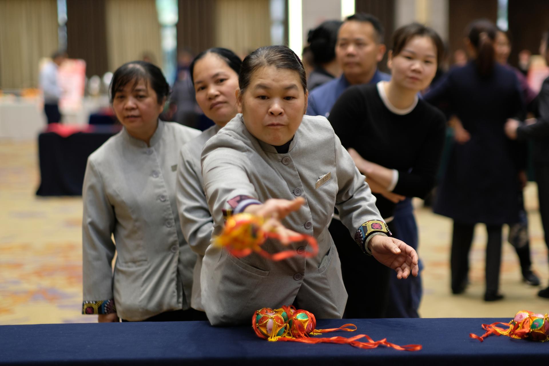 本次游園會(huì)吸引了近120余名員工踴躍參與,活動(dòng)現(xiàn)場(chǎng)洋溢著節(jié)日的喜慶氣氛,各類趣味盎然的游戲讓人與人之間的關(guān)系更為緊密。本次活動(dòng)特別設(shè)計(jì)了9個(gè)趣味十足的主題互動(dòng)游藝區(qū),包含“投壺” “吸?!?“福氣套圈” “蒙面敲鑼” “母雞下蛋”“壯鄉(xiāng)繡球”和“垃圾分類”等內(nèi)容,促進(jìn)了參與者之間的交流與互動(dòng)。手工制作區(qū)域同樣人氣爆棚,在工作人員的指導(dǎo)下,員工們親手制作元宵花燈,將對(duì)新一年的美好祝福融入到一件件手工藝品中。