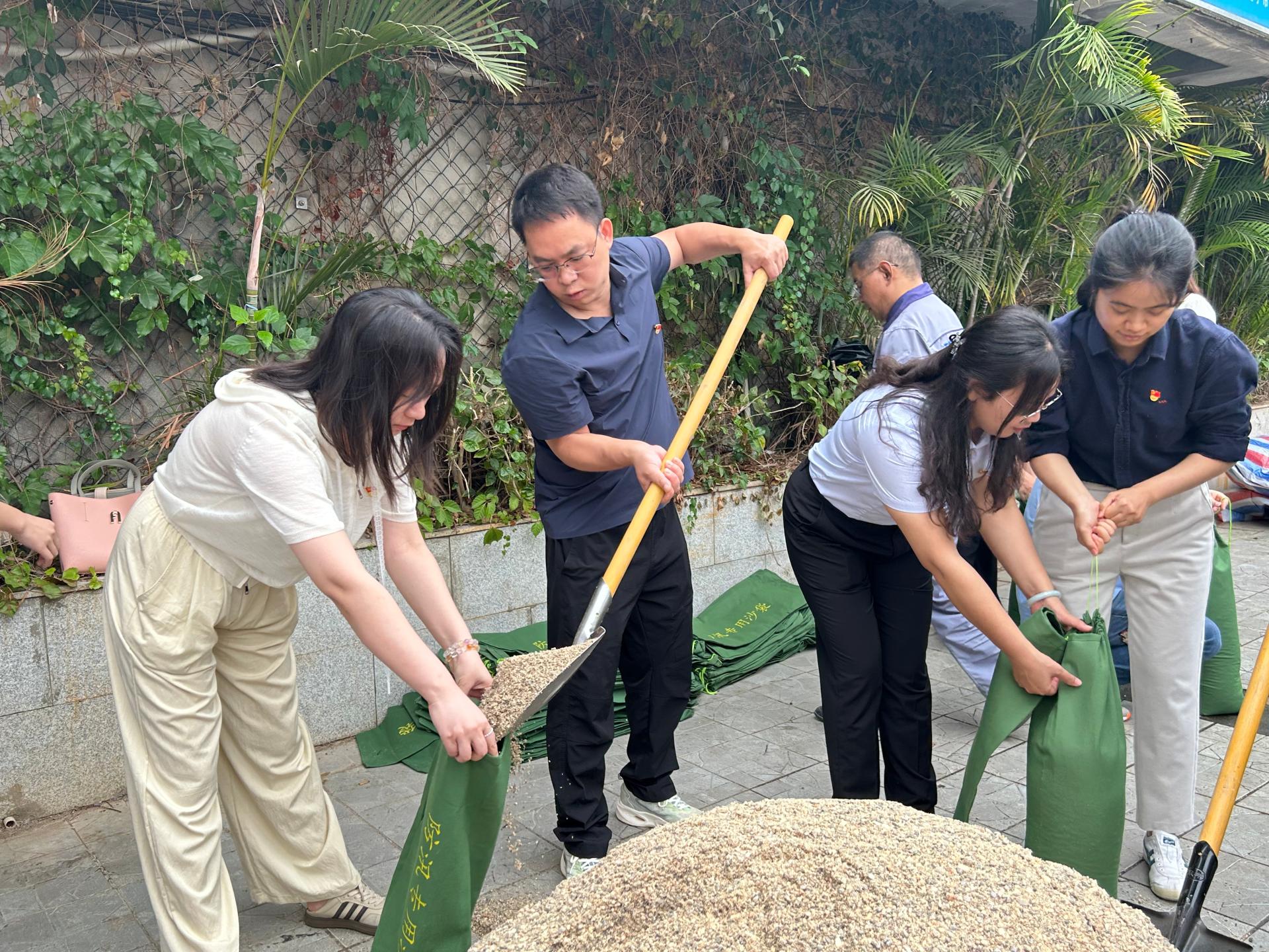 在志愿服務(wù)活動(dòng)現(xiàn)場,威寧資產(chǎn)經(jīng)營集團(tuán)“威惠星”黨員志愿者手持沙鏟將細(xì)沙裝袋、扎緊、搬運(yùn),動(dòng)作迅速,井然有序,筑起一道道堅(jiān)固的“防汛沙袋墻”。