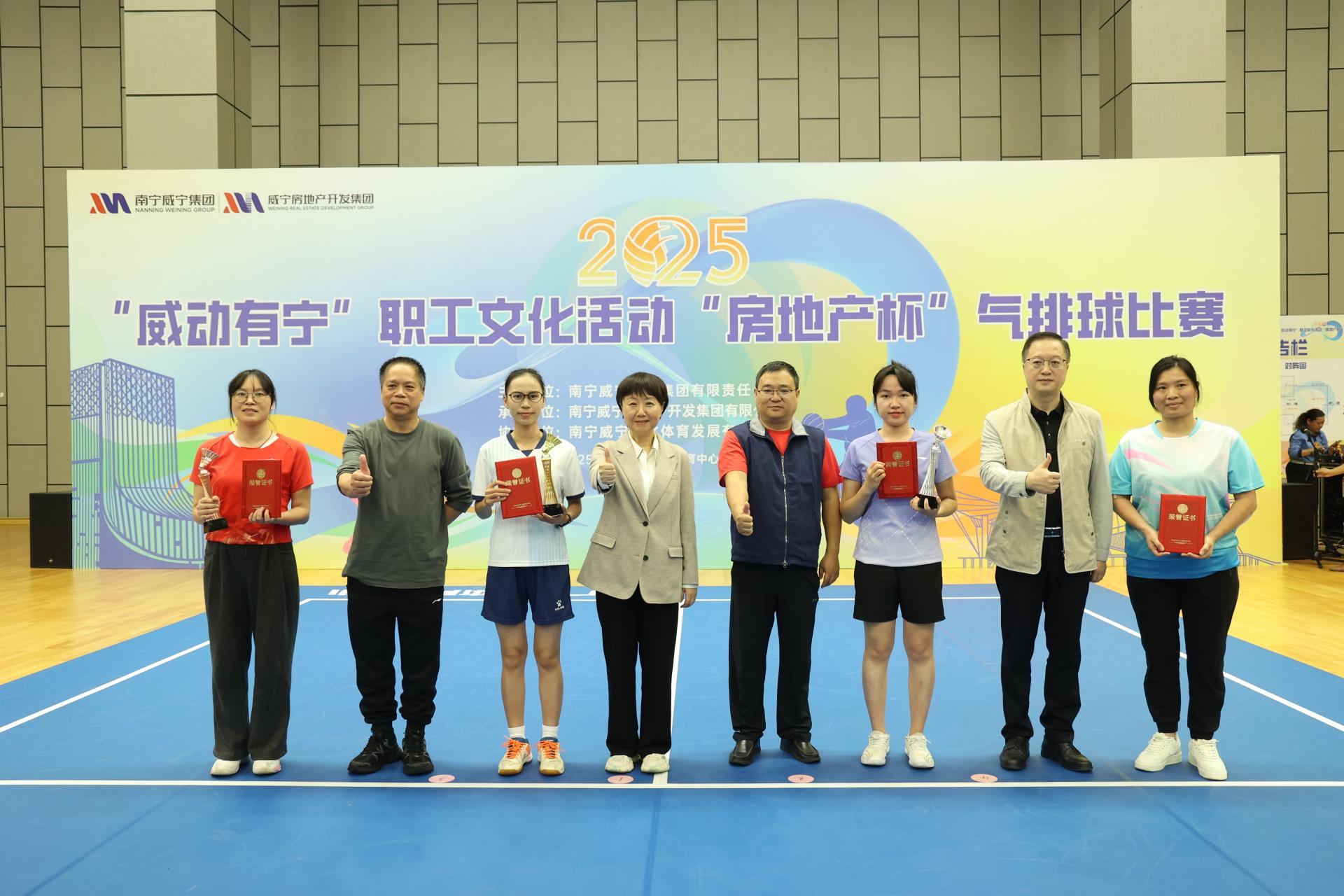 2025年11月16日,隨著最后一場氣排球賽事的終場哨響,南寧威寧集團(tuán)2025年“威動有寧”職工文化活動在團(tuán)結(jié)、熱烈、拼搏的氛圍中迎來圓滿收官。當(dāng)天舉行的“房地產(chǎn)杯”氣排球比賽頒獎儀式為這場貫穿全年的文化盛宴畫上了精彩的句號。集團(tuán)黨委書記、董事長劉巧瑛出席儀式并致閉幕詞,集團(tuán)黨委副書記、總經(jīng)理蘇慶威宣布獲獎名單,集團(tuán)領(lǐng)導(dǎo)班子成員為在系列賽事中獲獎的隊(duì)伍頒獎。