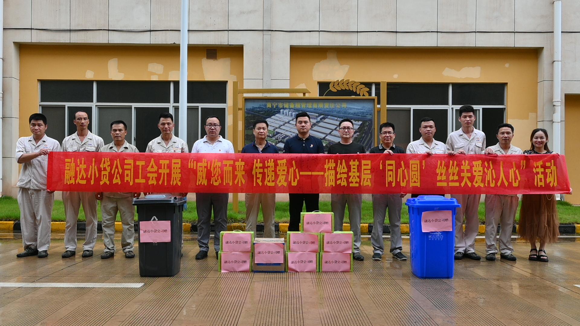 活動現(xiàn)場,融達小貸公司黨支部還聯(lián)合公司工會開展“描繪基層‘同心圓’,絲絲關愛沁人心”活動,慰問儲備糧公司五象糧庫的一線工人、退伍軍人代表,發(fā)放一批清涼飲品、防疫用品及垃圾分類物資等慰問品,進一步強化了工會之間的合作交流,也營造了擁軍優(yōu)屬、擁政愛民的良好社會氛圍,開啟了深化黨建共建工作新篇章。