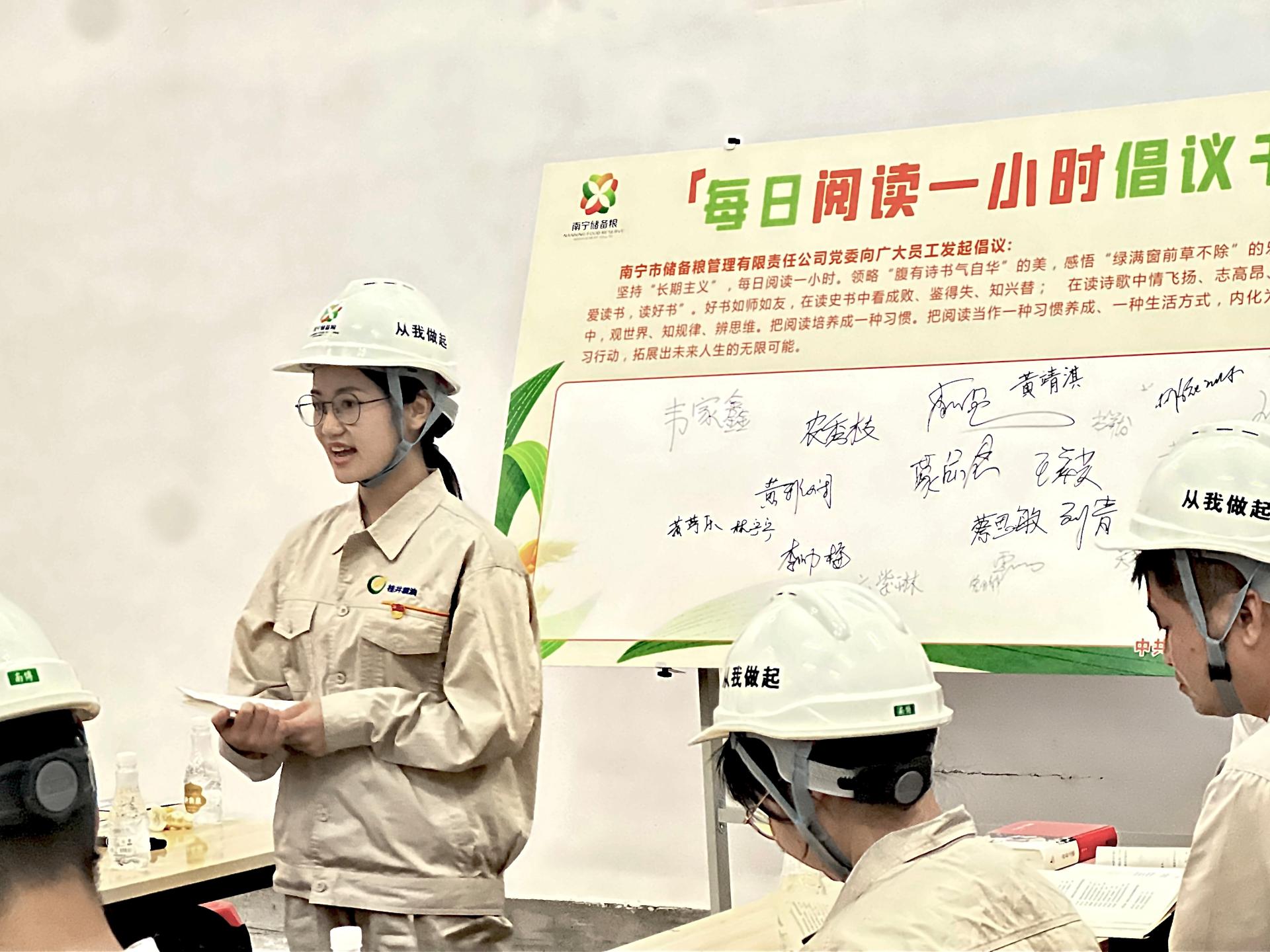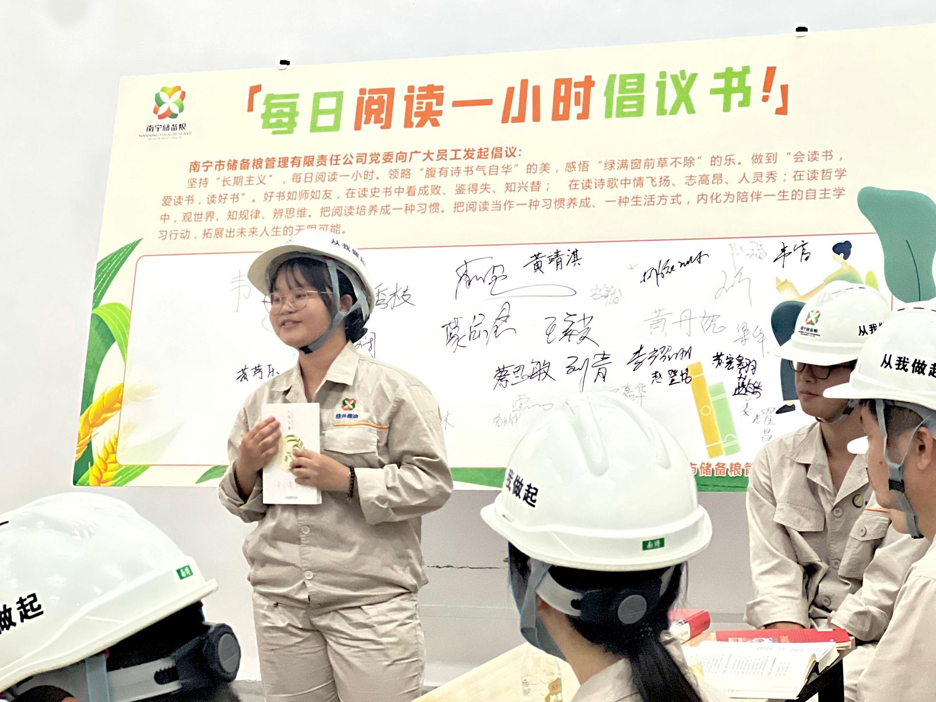 倉守優(yōu)糧萬家寧,胸藏文墨建新功。為深入貫徹落實黨的二十大精神,營造公司全體黨員職工形成“會讀書、愛讀書、讀好書”的良好氛圍,2023年5月31日,儲備糧公司黨委在五象糧庫成品倉舉辦“書香飄糧倉、建功傳萬代”讀書分享活動。