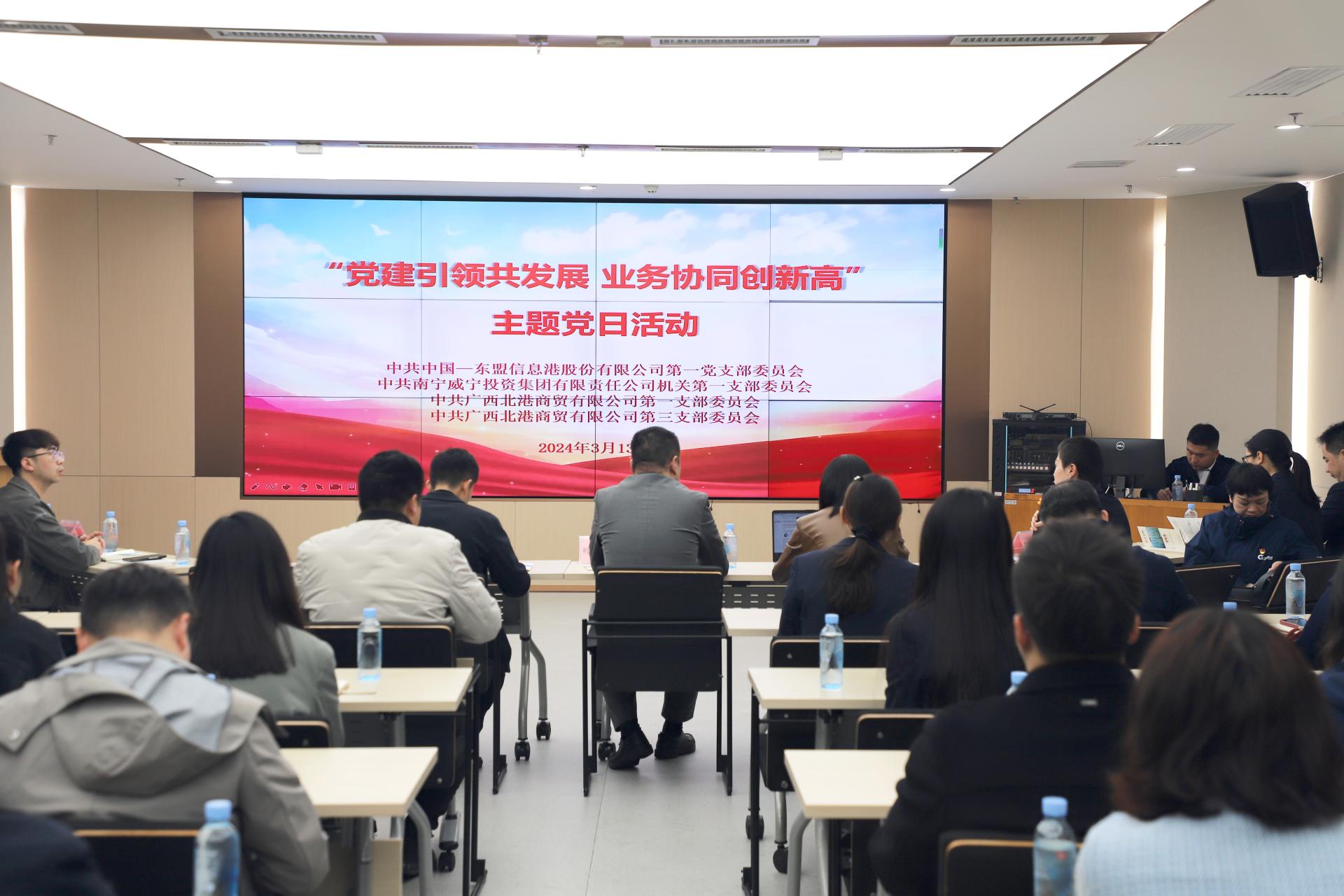 2024年3月13日下午,南寧威寧集團(tuán)機(jī)關(guān)第一黨支部與中國(guó)東信公司第一黨支部、北港商貿(mào)公司第一黨支部和第三黨支部聯(lián)合開展“黨建引領(lǐng)共發(fā)展業(yè)務(wù)協(xié)同創(chuàng)新高”主題黨日活動(dòng),支部黨員、發(fā)展對(duì)象、積極分子、入黨申請(qǐng)人約30人參加活動(dòng)。