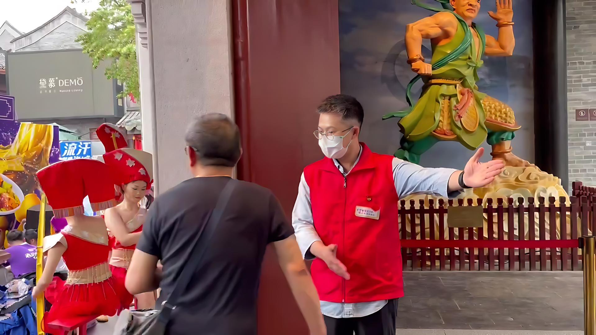 志愿者化身“引導(dǎo)員”在 邕州古城·三街兩巷進行客流疏導(dǎo)