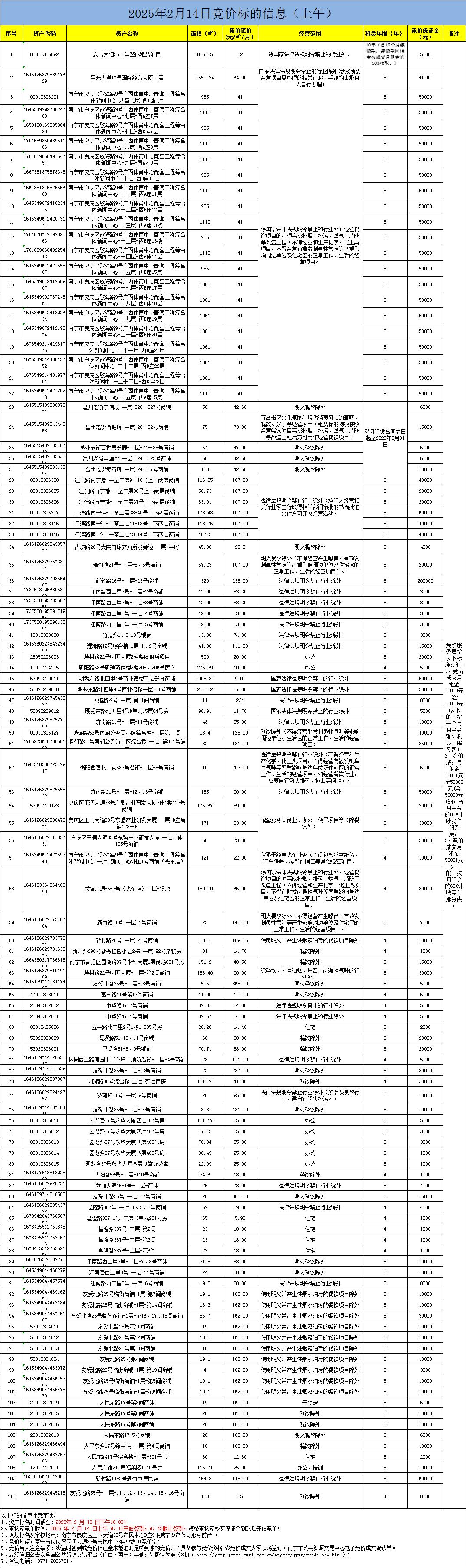 2025年2月14日競(jìng)價(jià)標(biāo)的信息(現(xiàn)場(chǎng)競(jìng)價(jià))