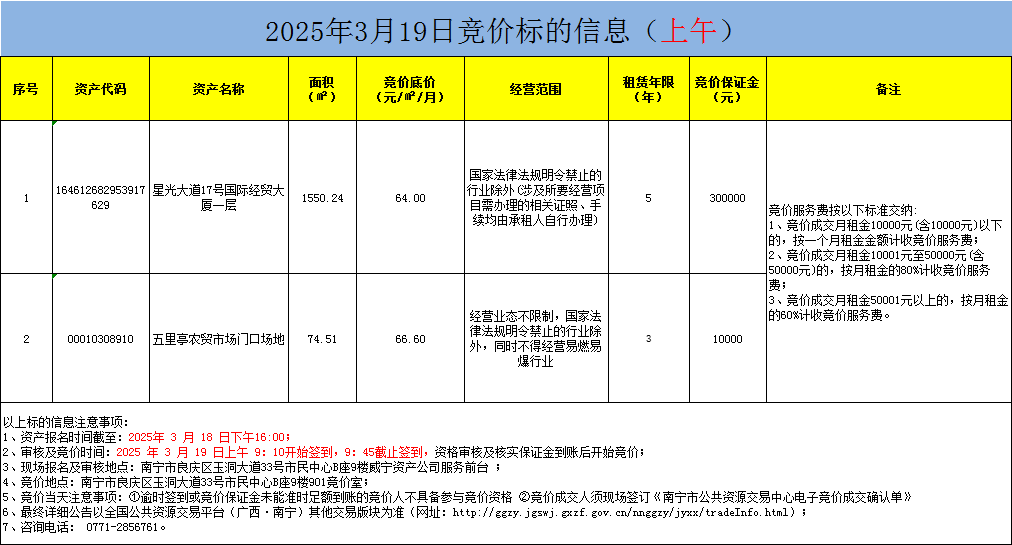 2025年3月19日競(jìng)價(jià)標(biāo)的信息(現(xiàn)場(chǎng)競(jìng)價(jià))