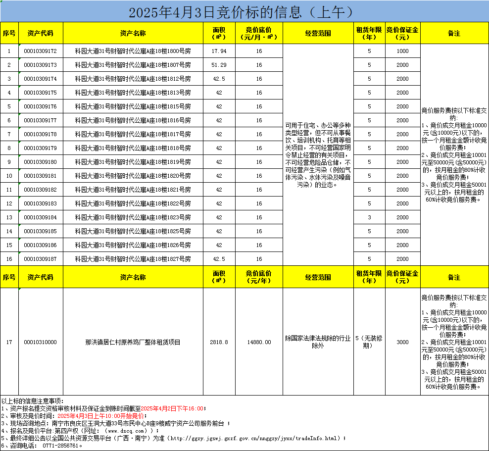 2025年4月3日競價(jià)標(biāo)的信息(線上競價(jià))