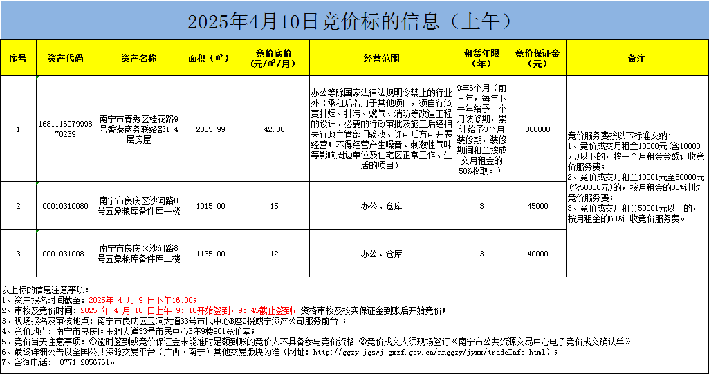 2025年4月10日競價標的信息(現(xiàn)場競價)