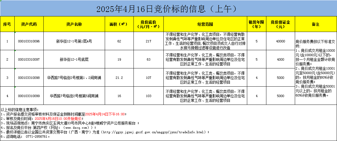 2025年4月16日競價(jià)標(biāo)的信息(線上競價(jià))