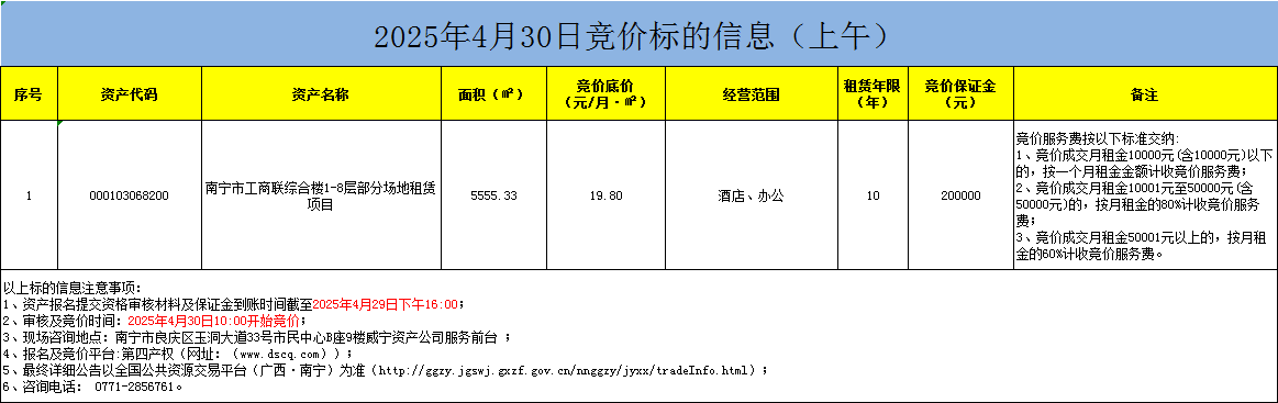 2025年4月30日競價(jià)標(biāo)的信息(線上競價(jià))
