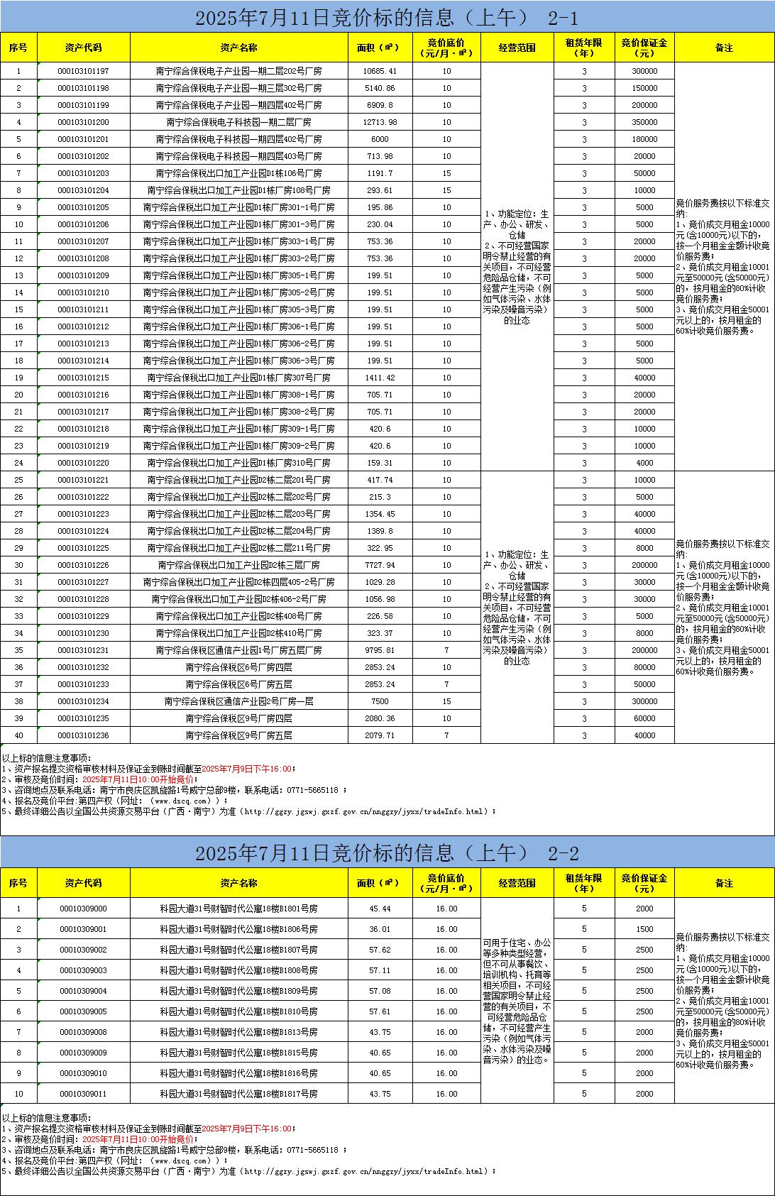 2025年7月11日競價標(biāo)的信息(線上競價)