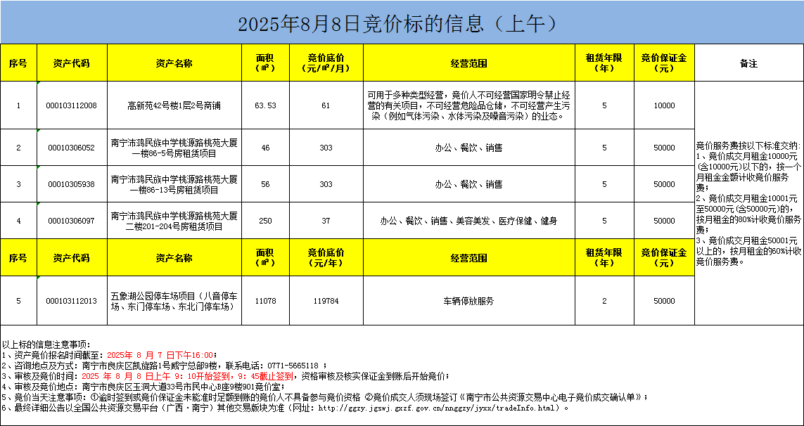 2025年8月8日現(xiàn)場(chǎng)競(jìng)價(jià)標(biāo)的信息(現(xiàn)場(chǎng)競(jìng)價(jià))