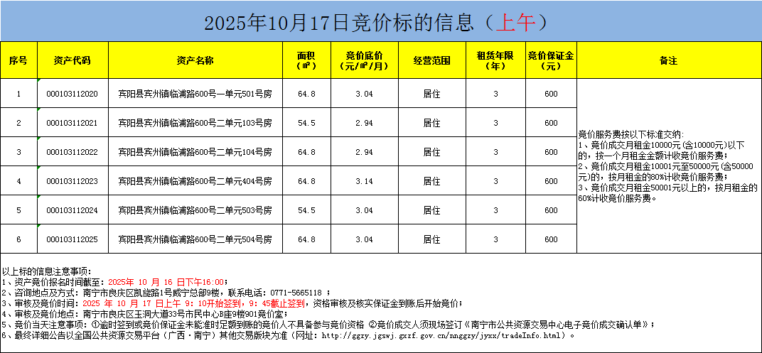2025年10月17日競價標的信息(現(xiàn)場競價)