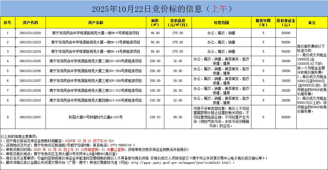 2025年10月22日競價(jià)標(biāo)的信息(現(xiàn)場競價(jià))