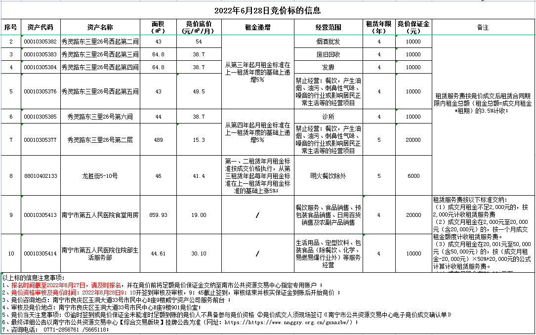 威寧資產(chǎn)公司2022年6月28日公開競價(jià)標(biāo)的信息