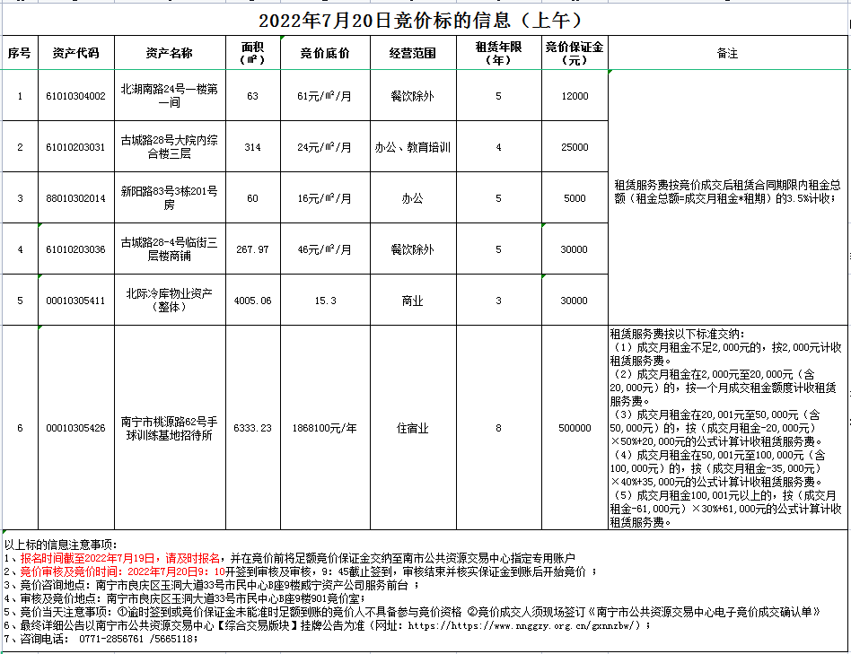 威寧資產(chǎn)公司2022年7月20日公開競價標(biāo)的信息