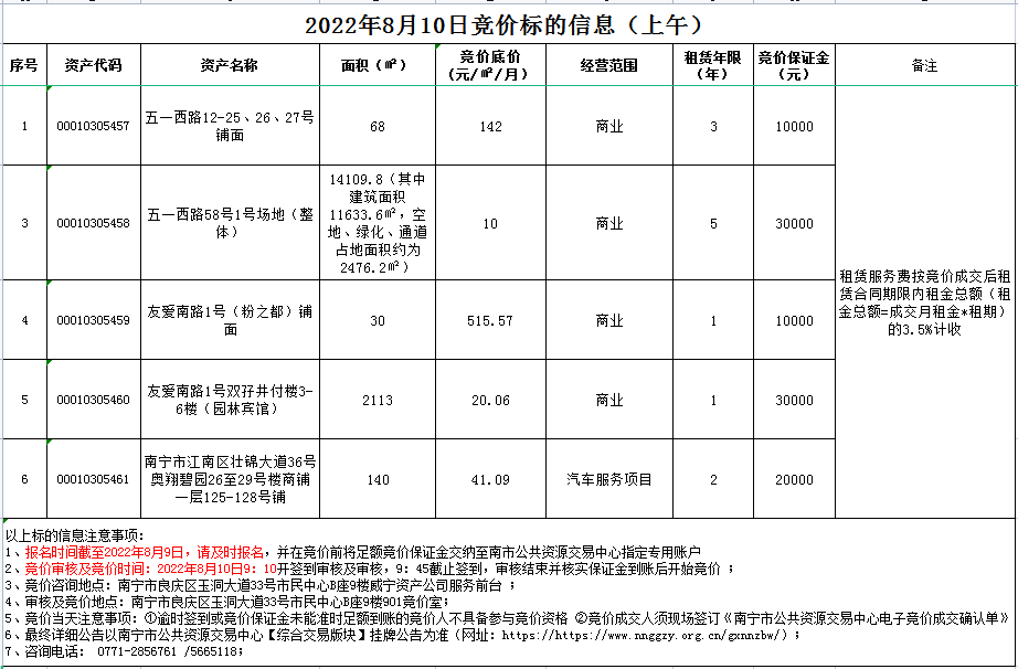 威寧資產(chǎn)公司2022年8月10日公開競價標(biāo)的信息