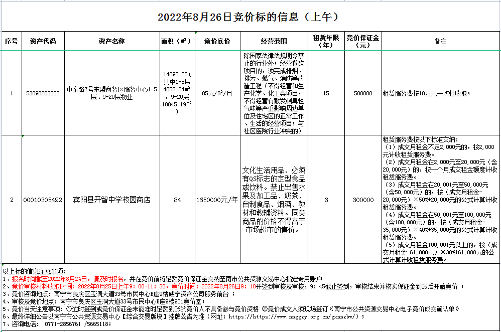 威寧資產(chǎn)公司2022年8月26日公開競價標(biāo)的信息