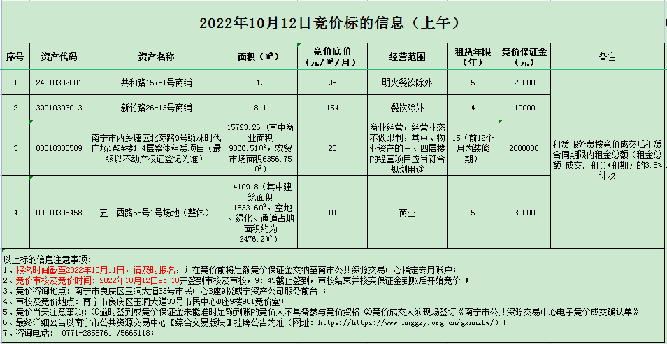 2022年10月12日競(jìng)價(jià)標(biāo)的信息