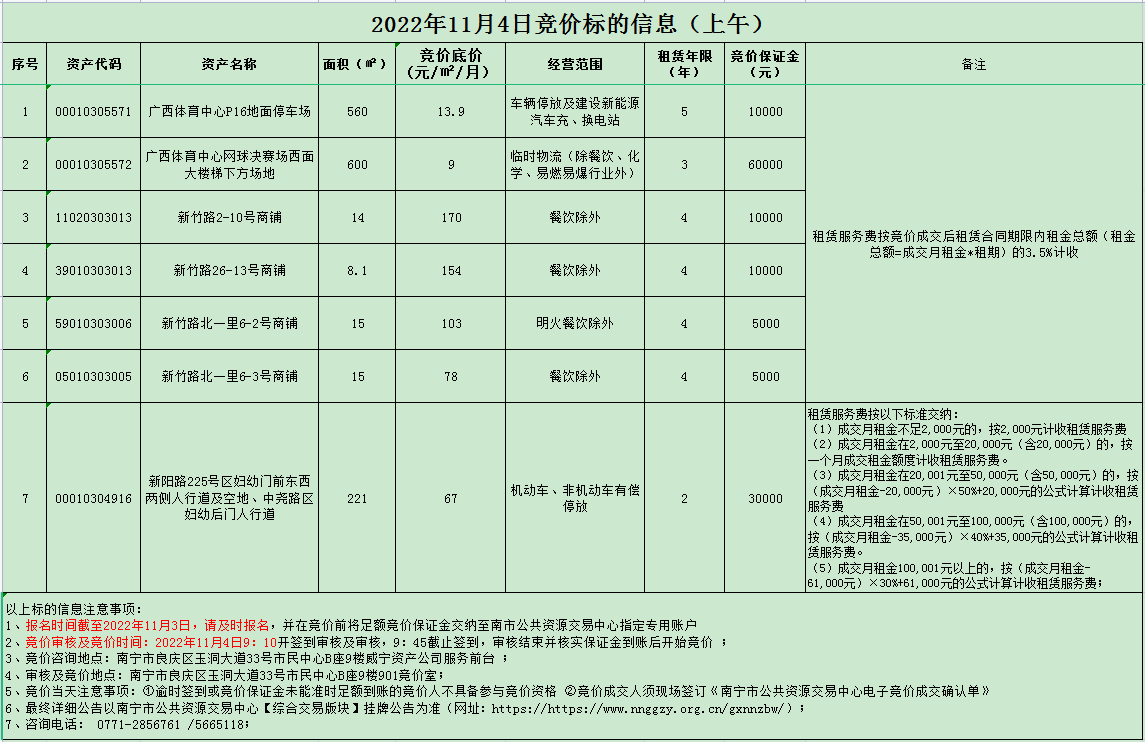 2022年11月4日競(jìng)價(jià)標(biāo)的信息