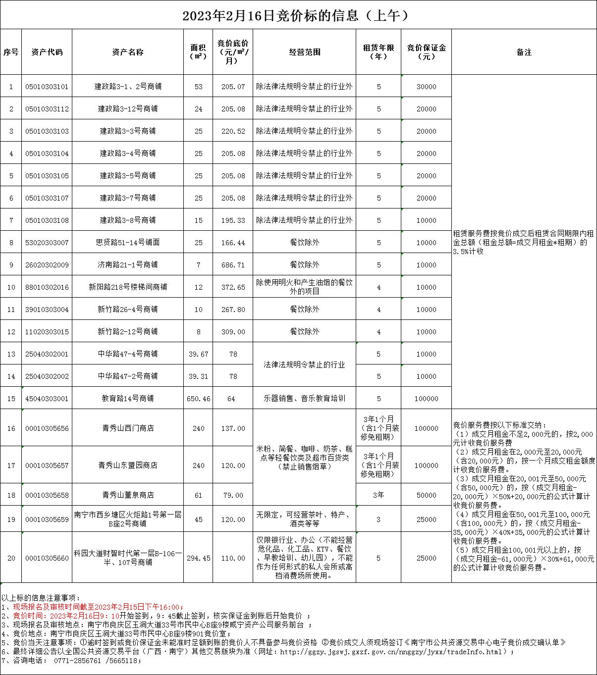 2023年2月16日競(jìng)價(jià)標(biāo)的信息