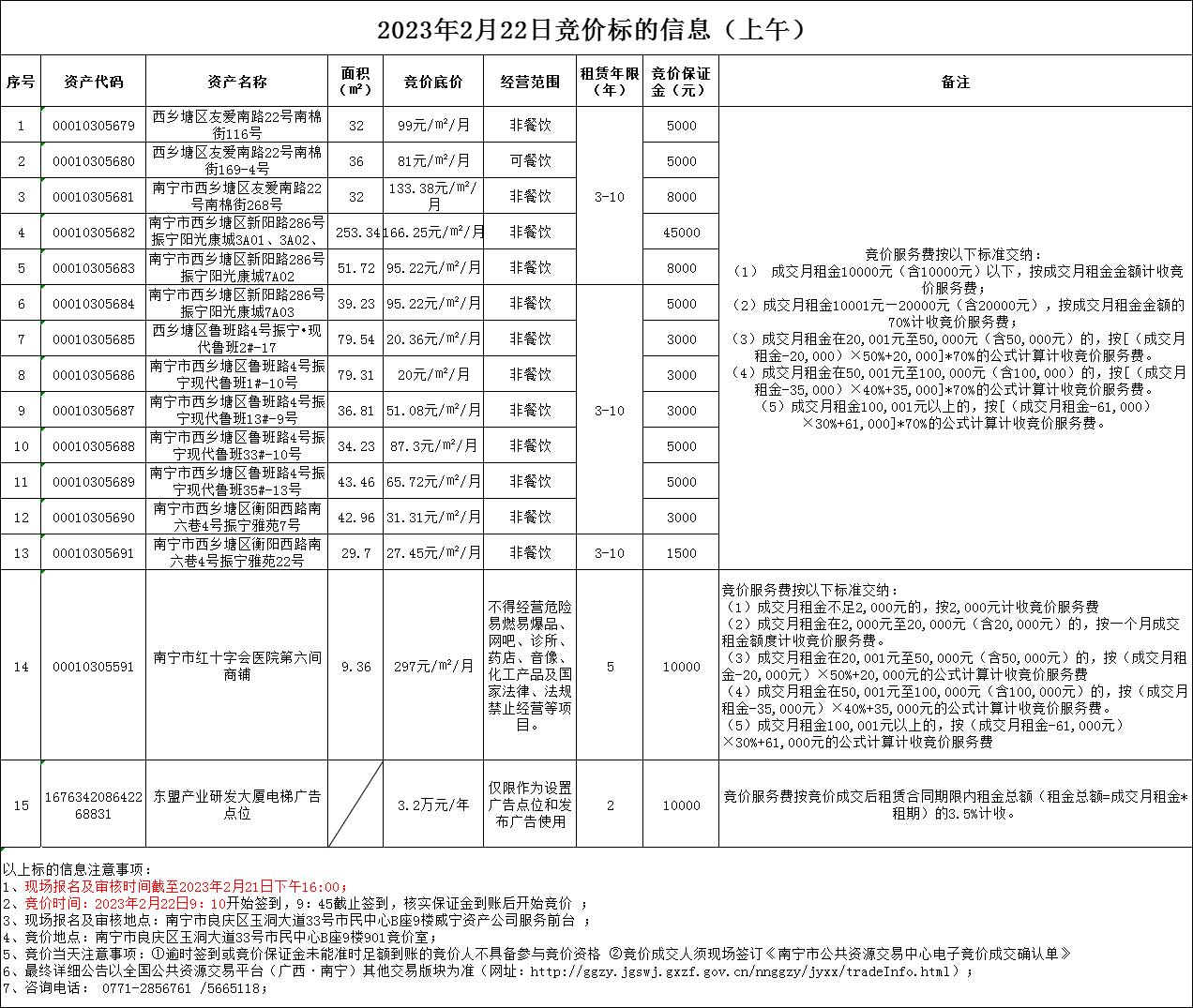 2023年2月22日競(jìng)價(jià)標(biāo)的信息