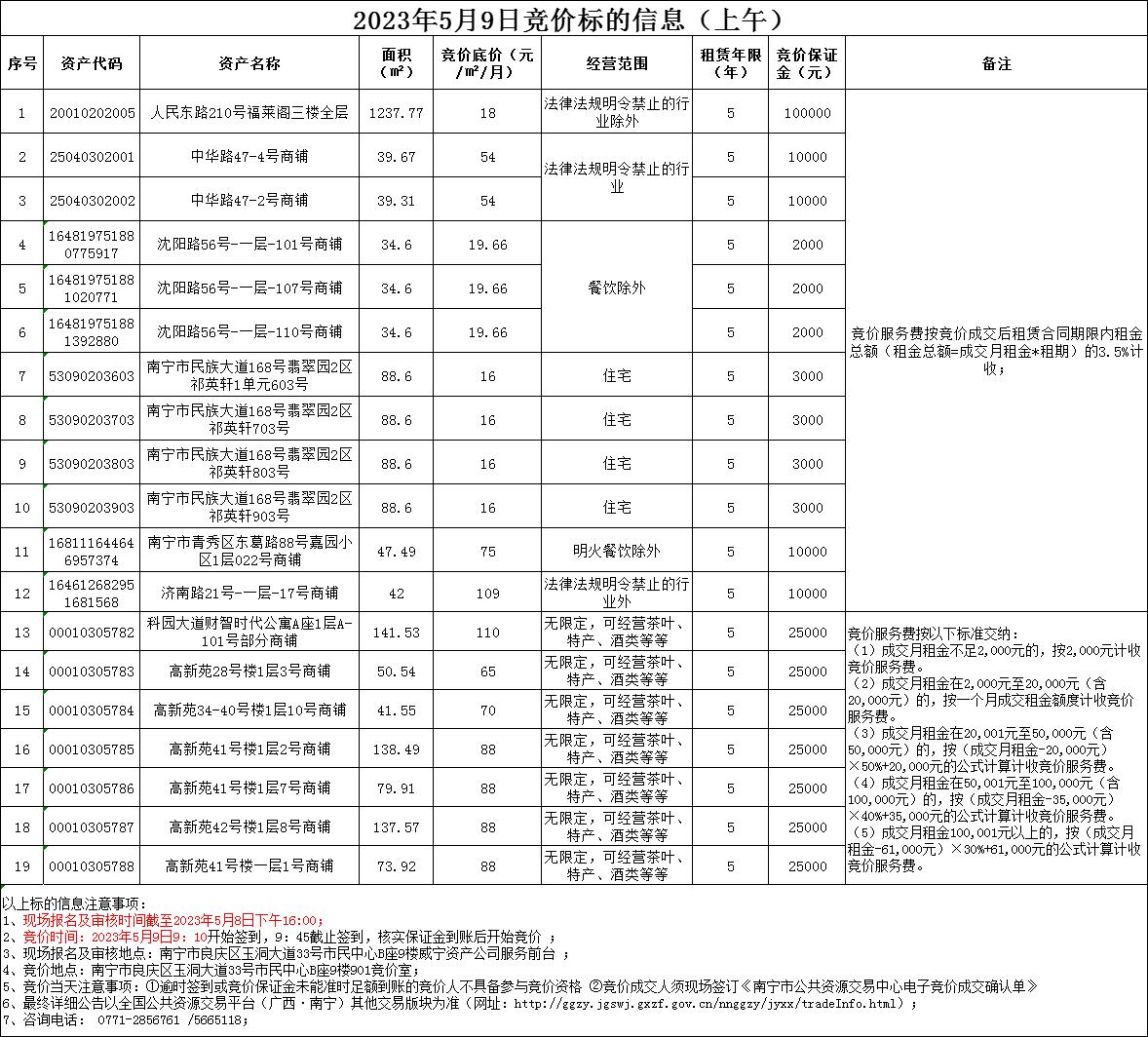 2023年5月9日競(jìng)價(jià)標(biāo)的信息