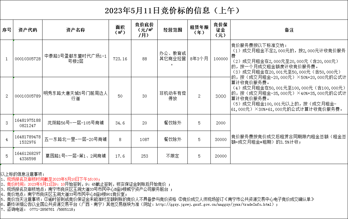 2023年5月11日競價標(biāo)的信息